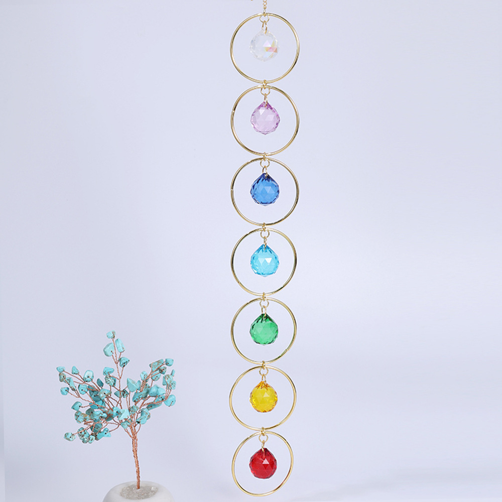 국경 다채로운 크리스탈 링 펜던트 크리스탈 에너지 돌 태양 포수 바람 벨 홈 거실 벽 장식 펜던트