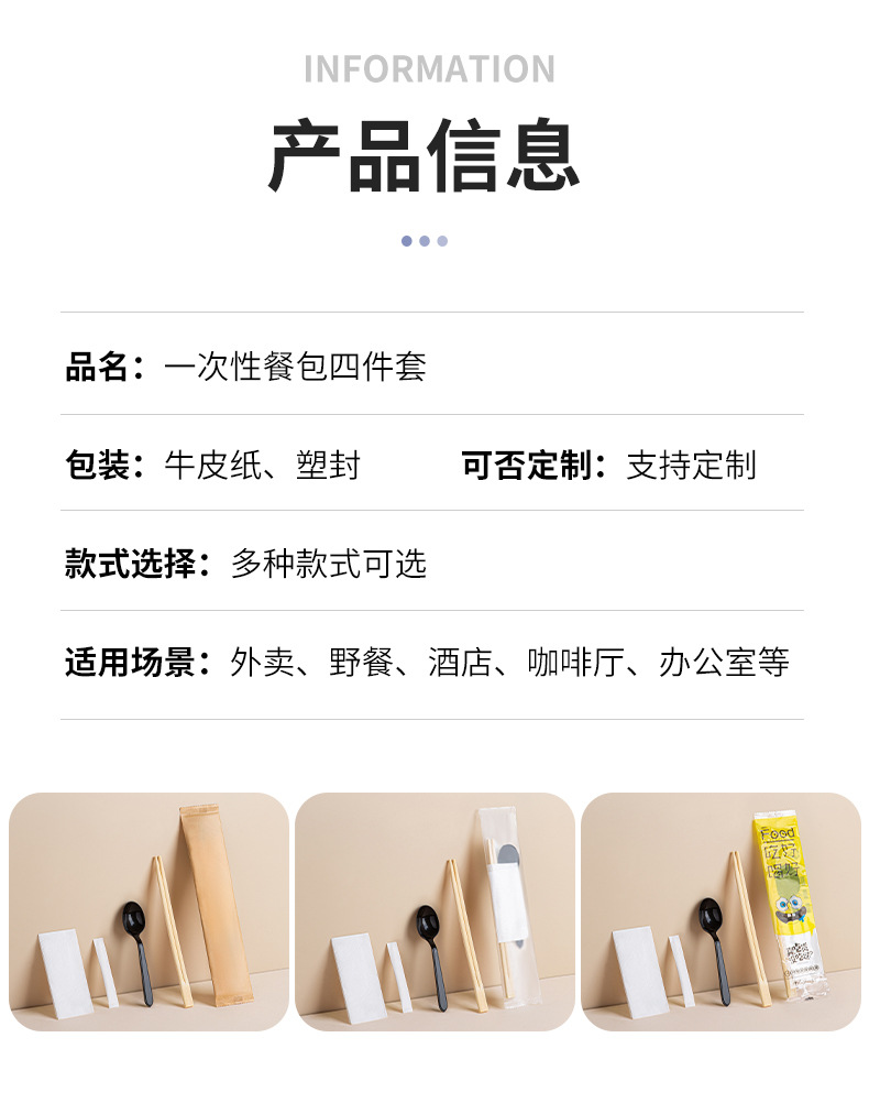 일회용 젓가락 4 조각 세트 크래프트 종이 테이크 아웃 포장 4 대 1 티슈 장갑 포크 스푼 멀티 사이즈 조합