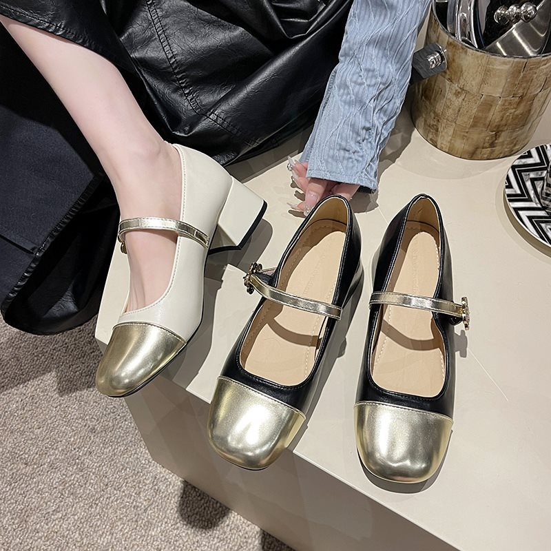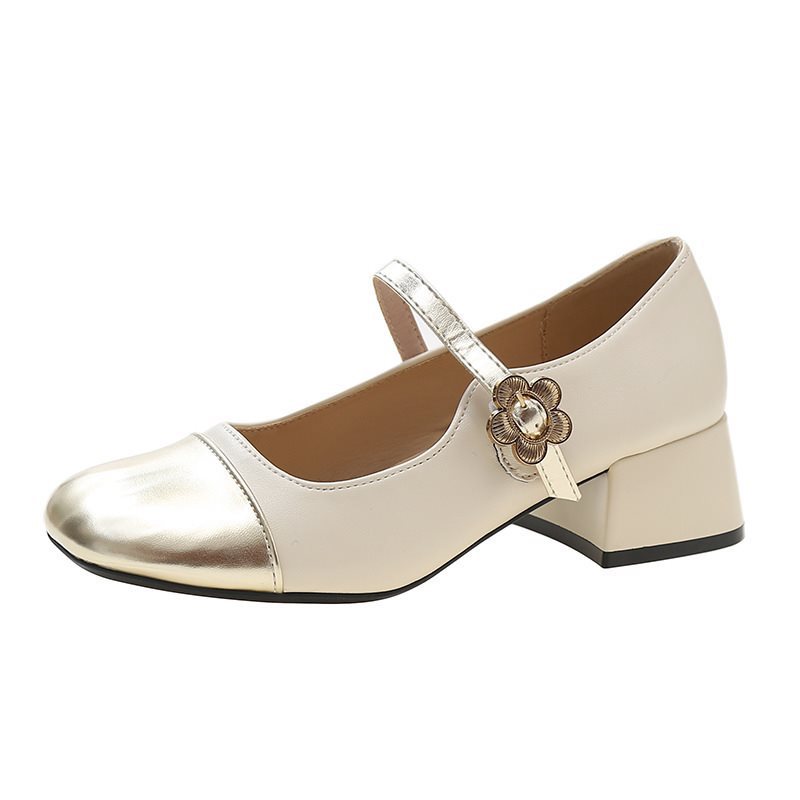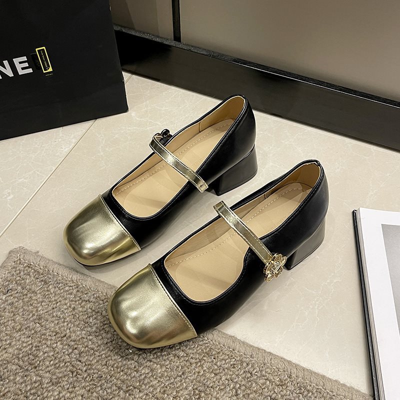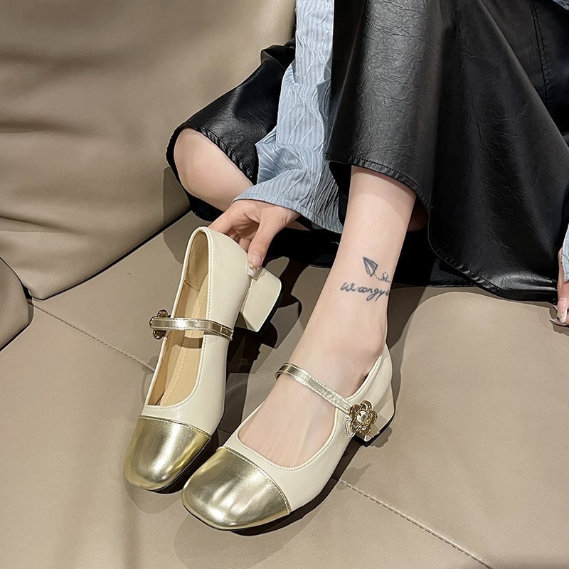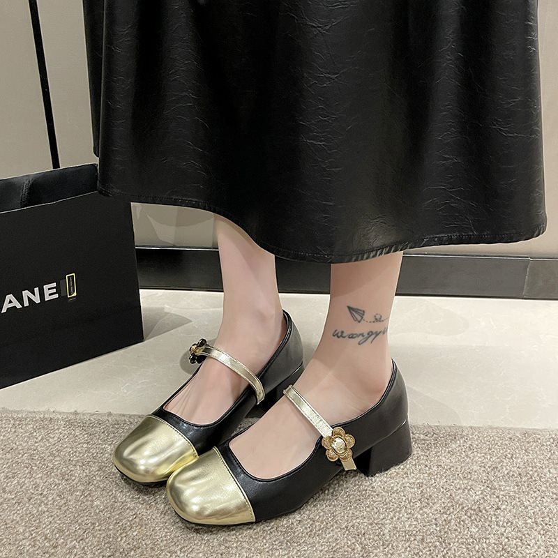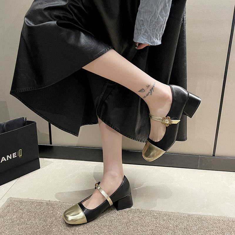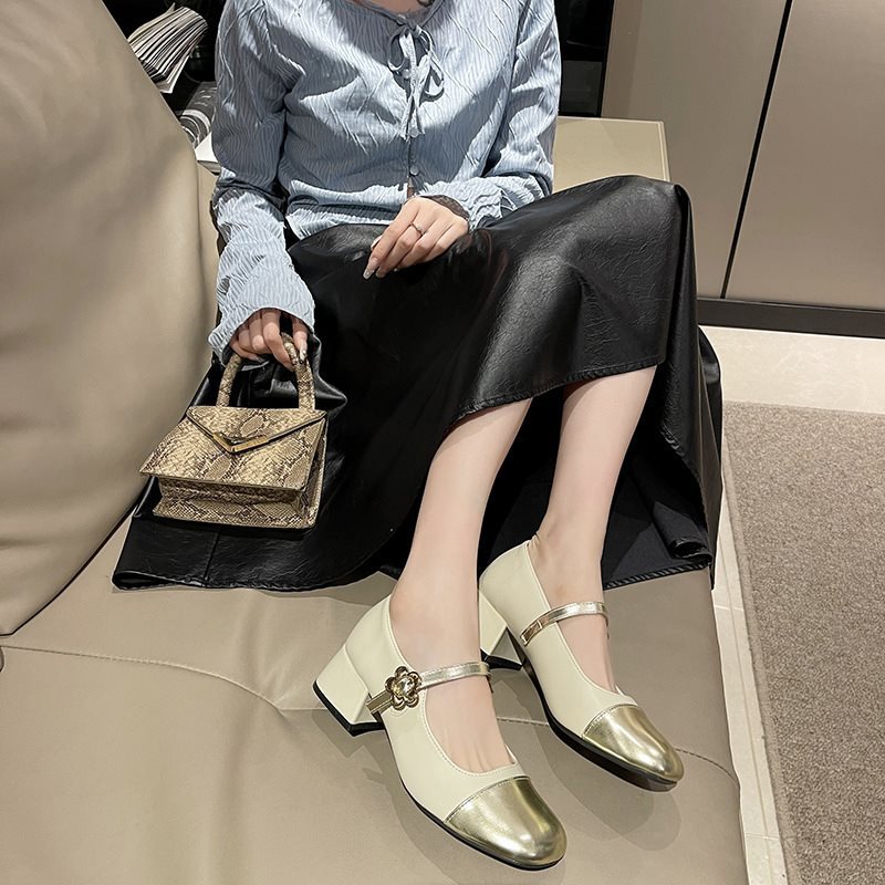 봄과 여름 스커트가 달린 Xiaoxiang 스타일 힐 새로운 2024 얕은 입 요정 여성 싱글 신발 Mary Jane 신발 여성용 두꺼운 발 뒤꿈치 둥근 머리스토어 가기