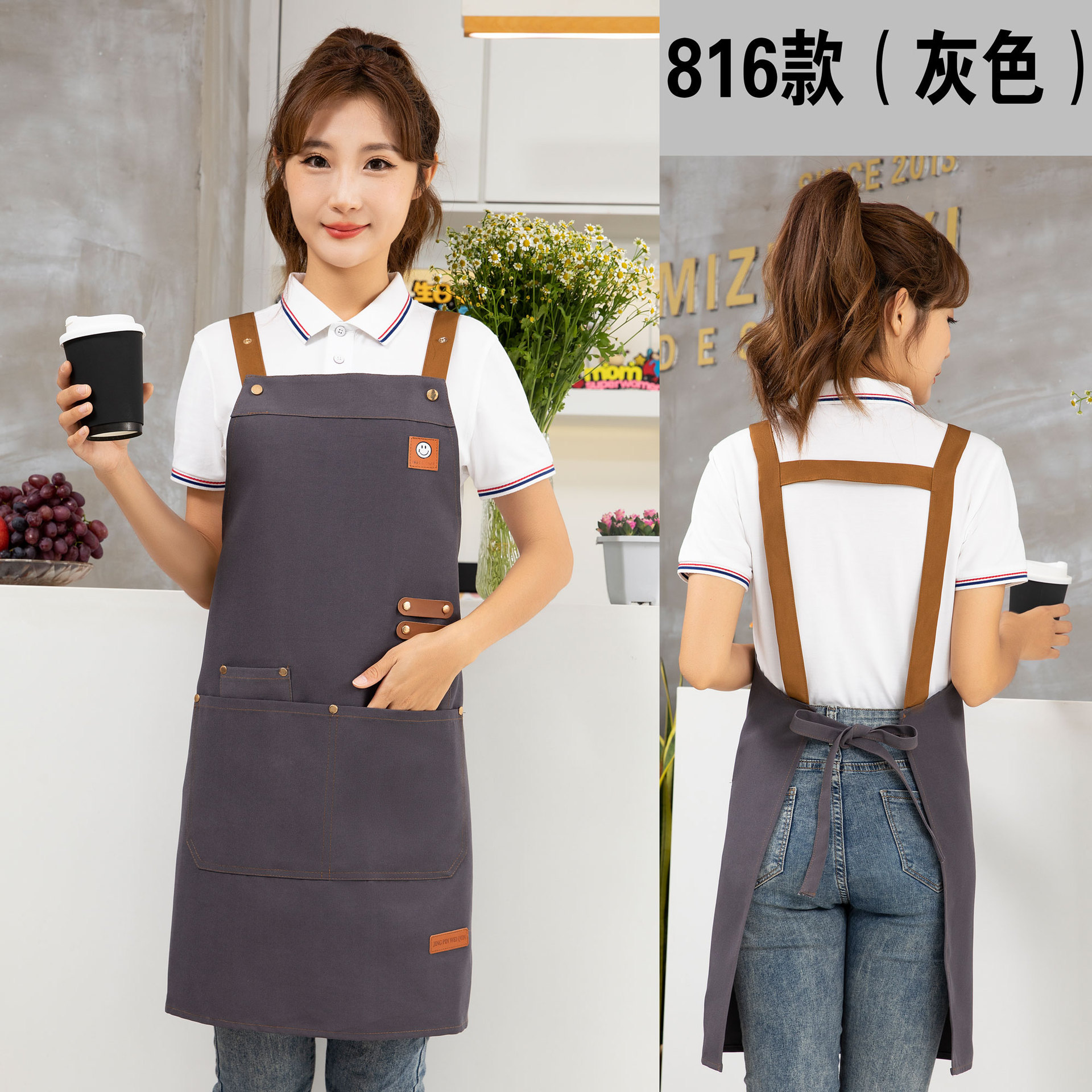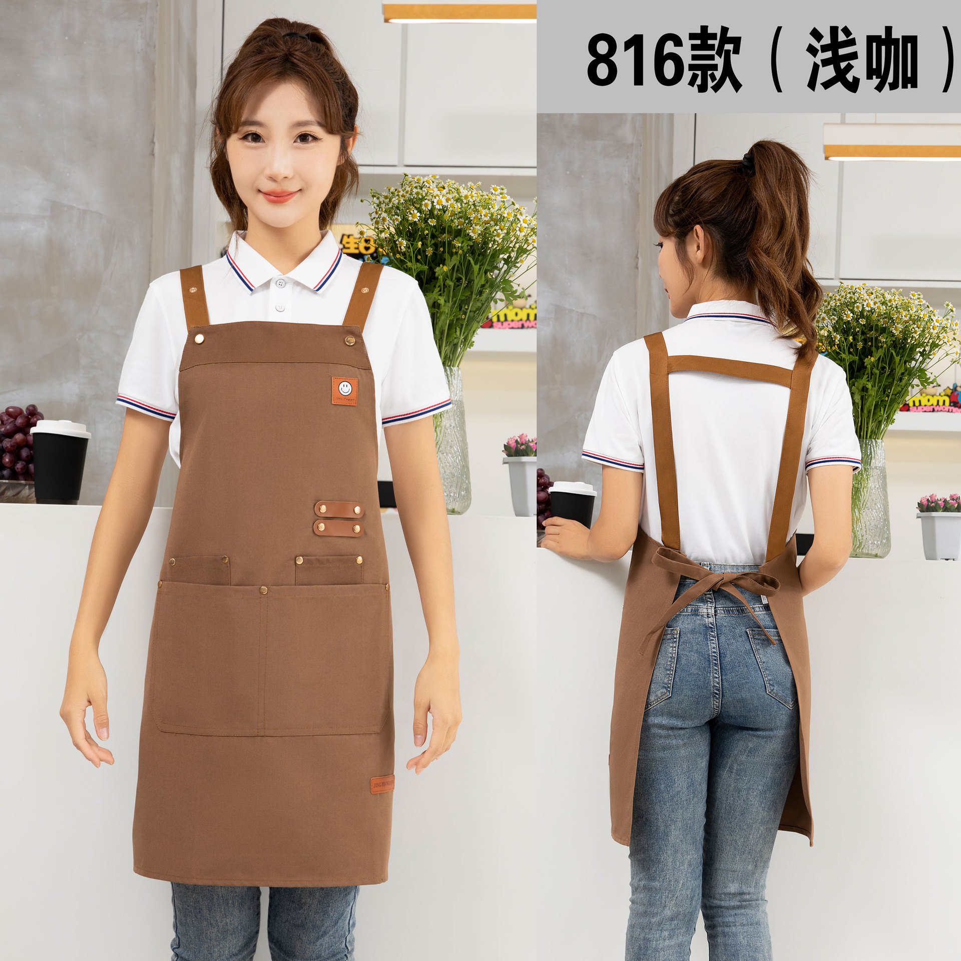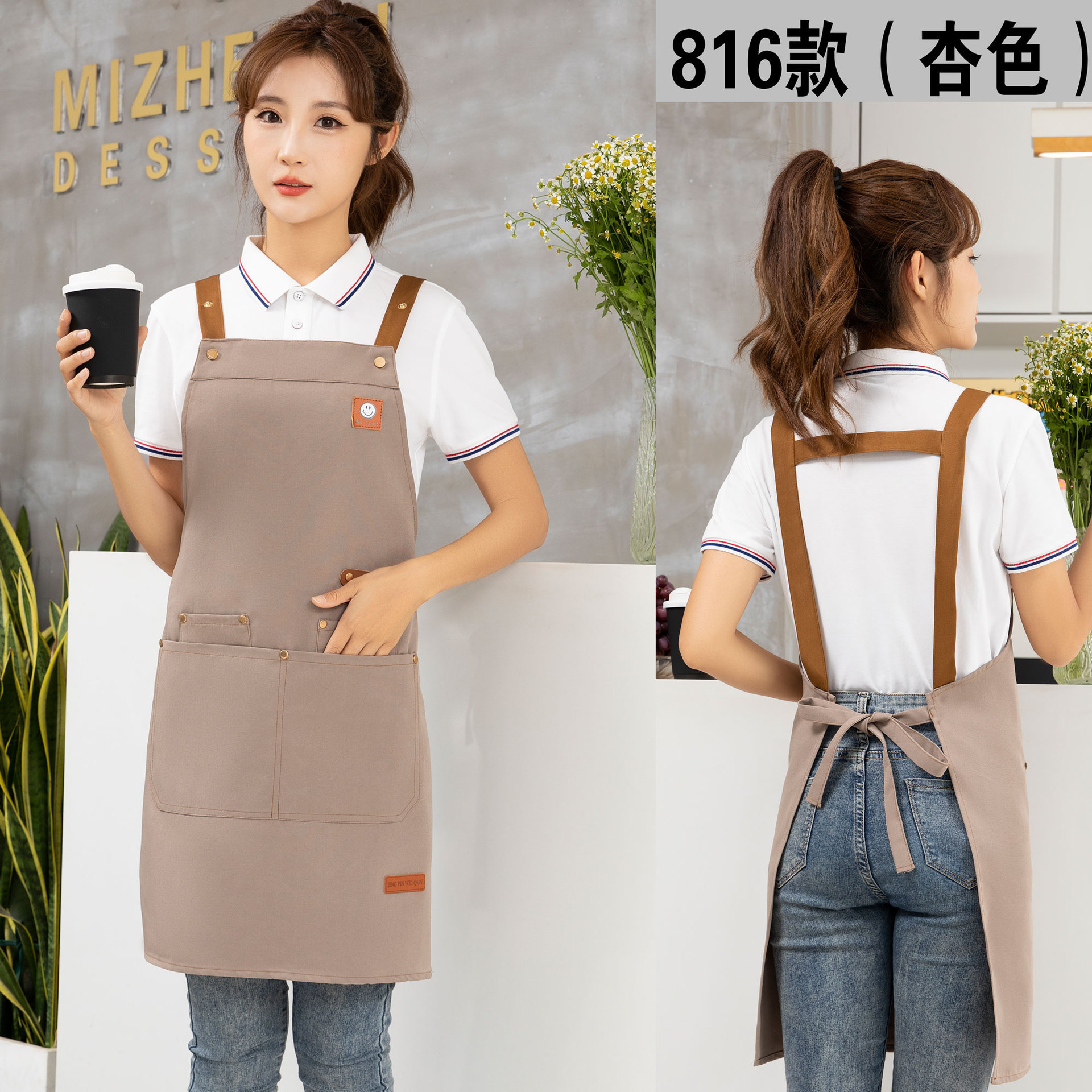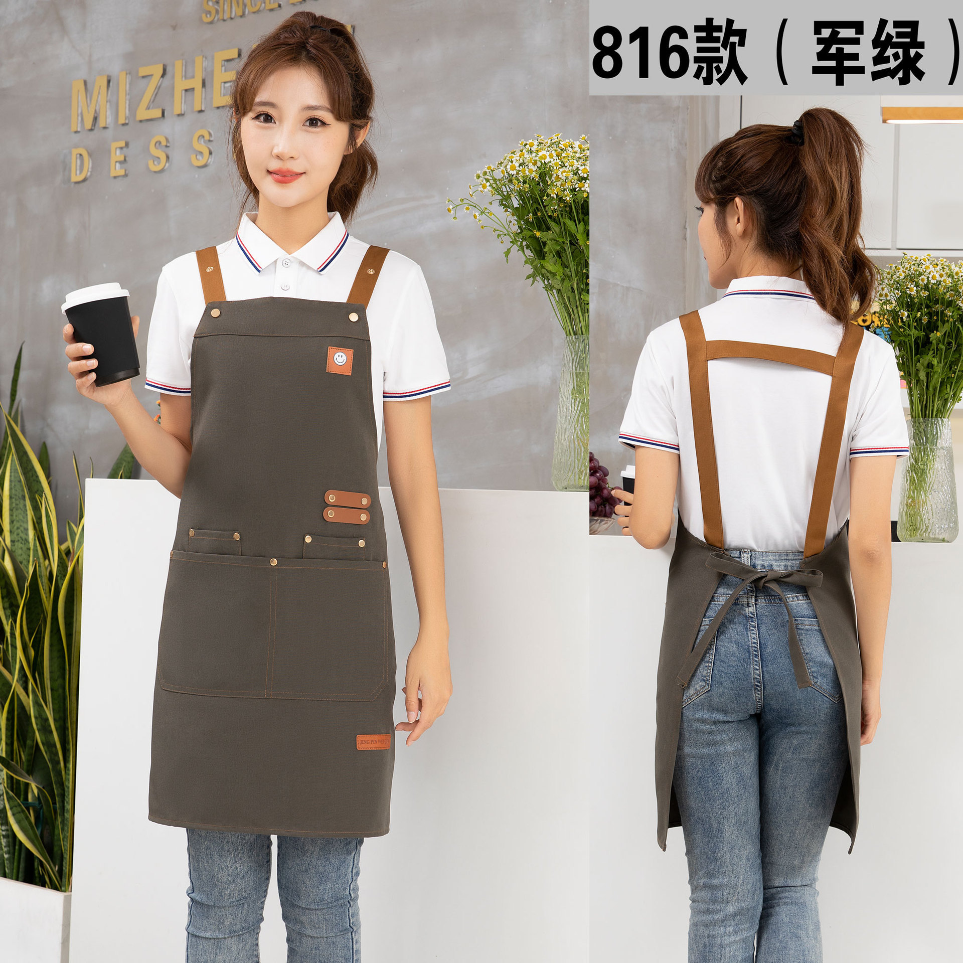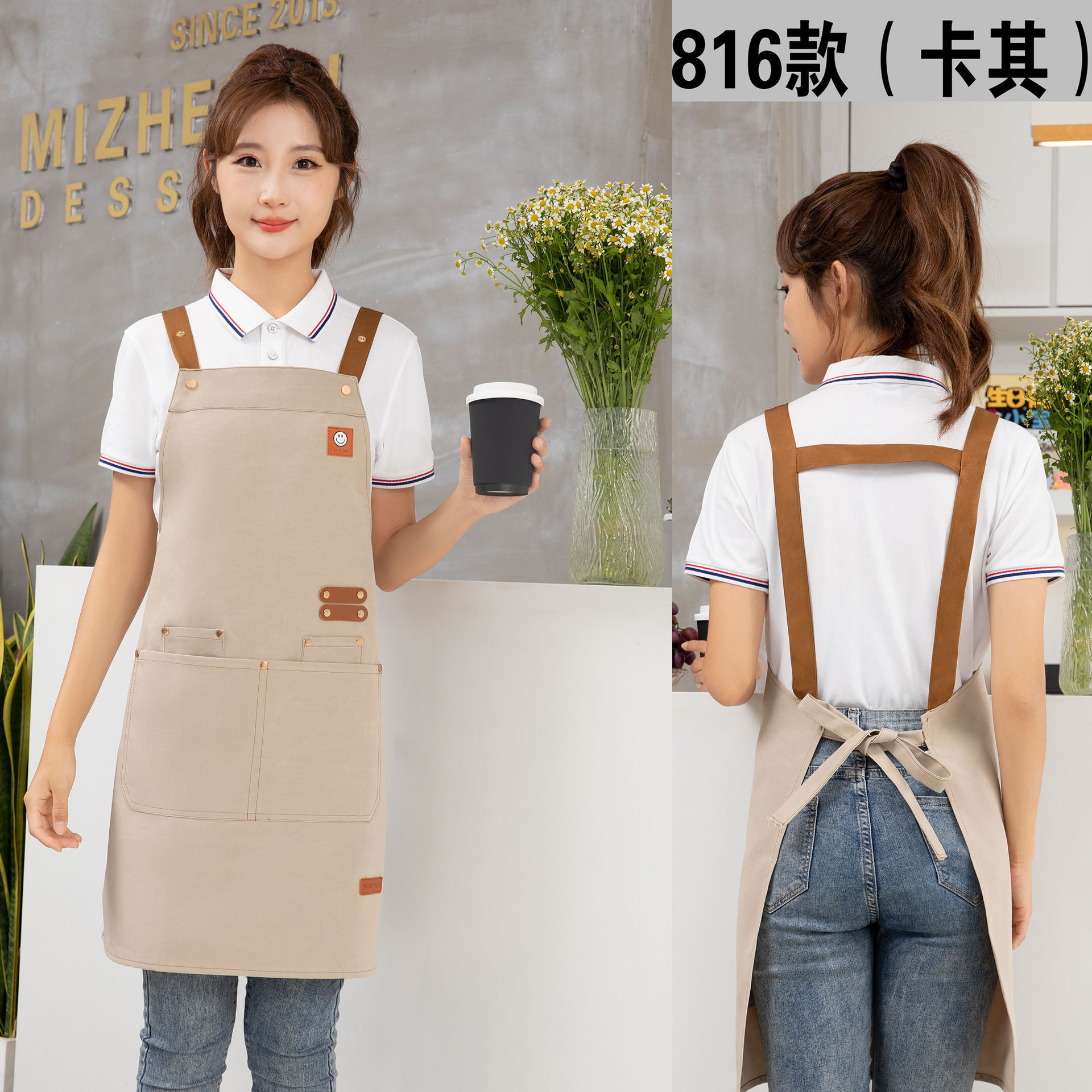 케이터링 방수 캔버스 앞치마 로고 인쇄 슈퍼마켓 웨이터 과일 커피 우유 차 가게 작업 허리 사용자 정의