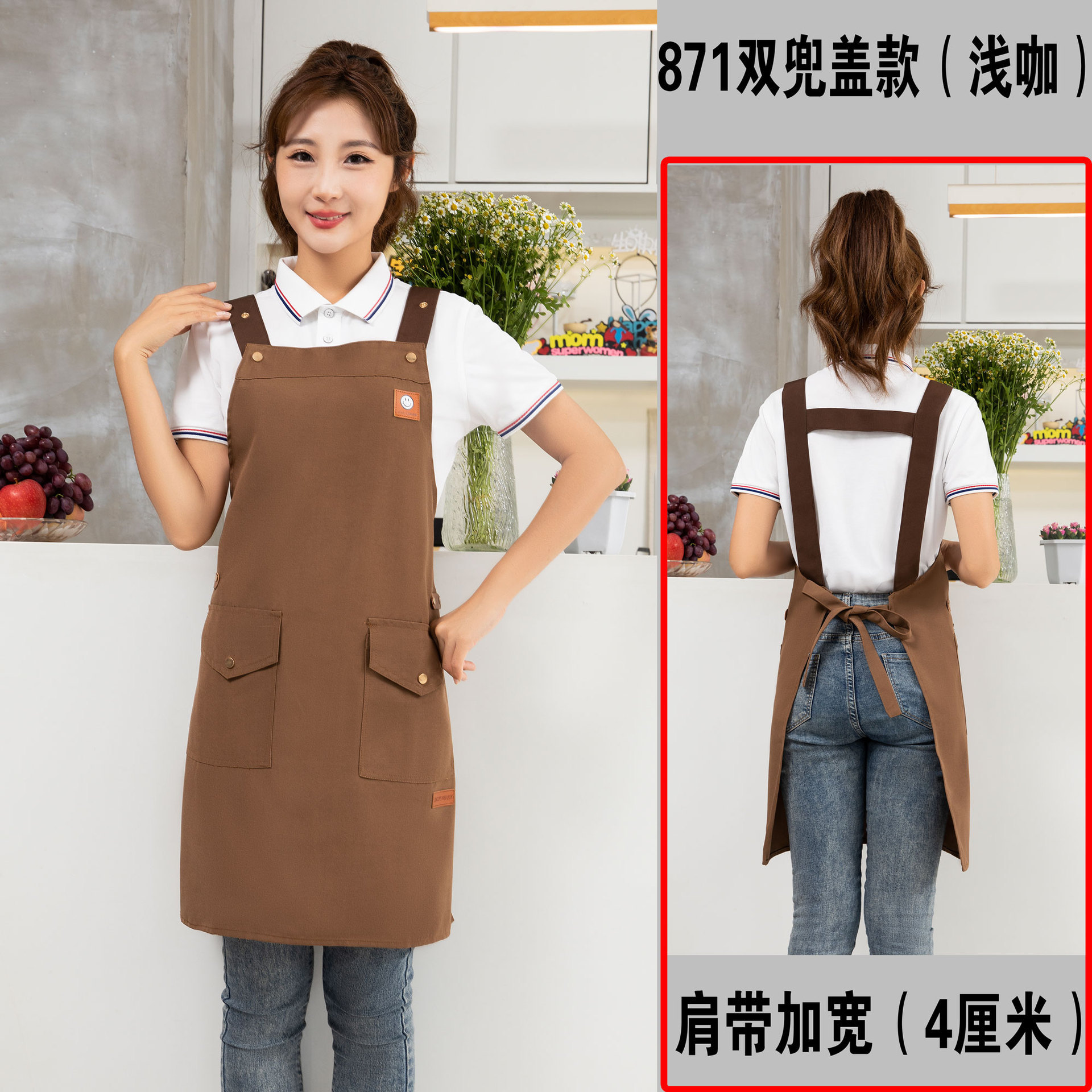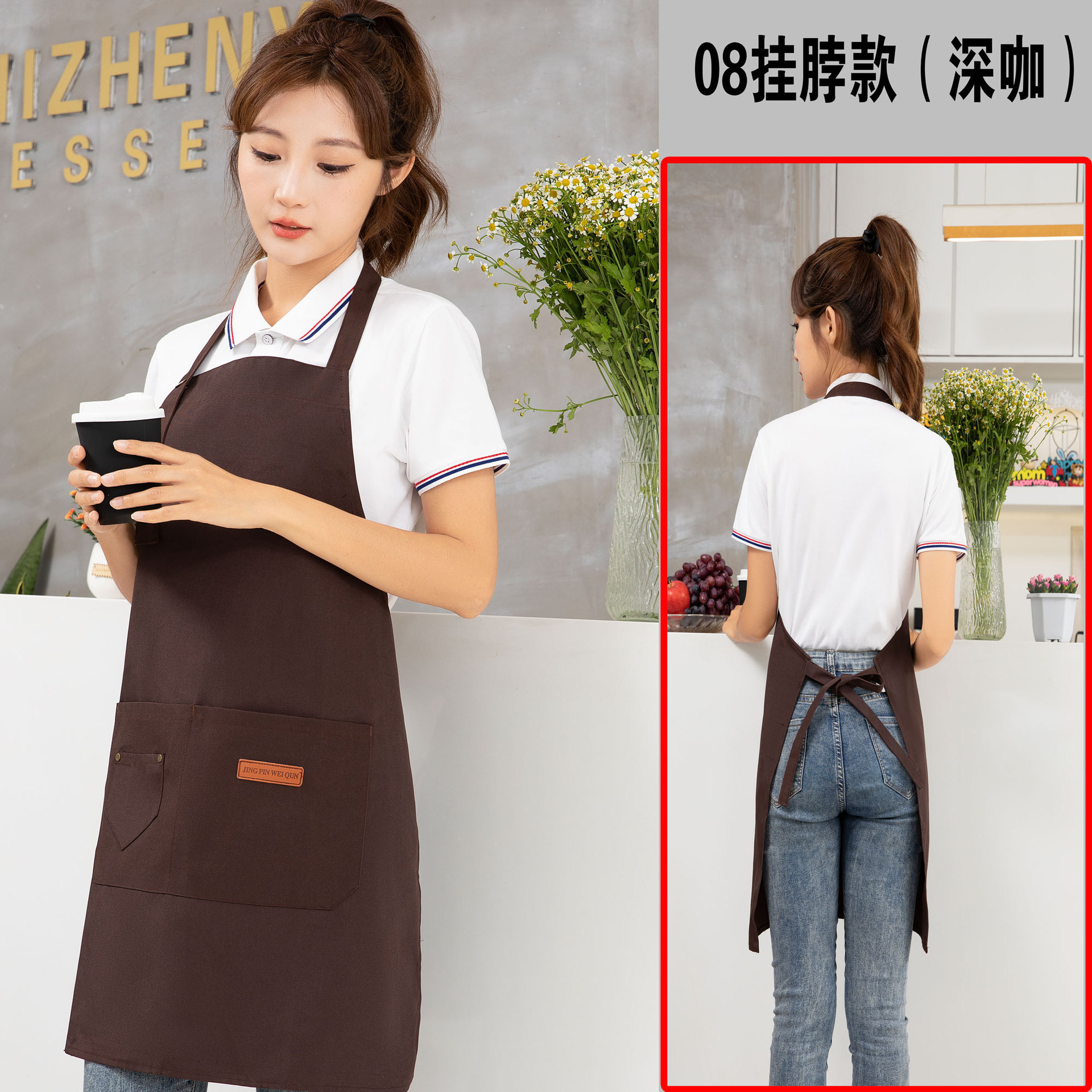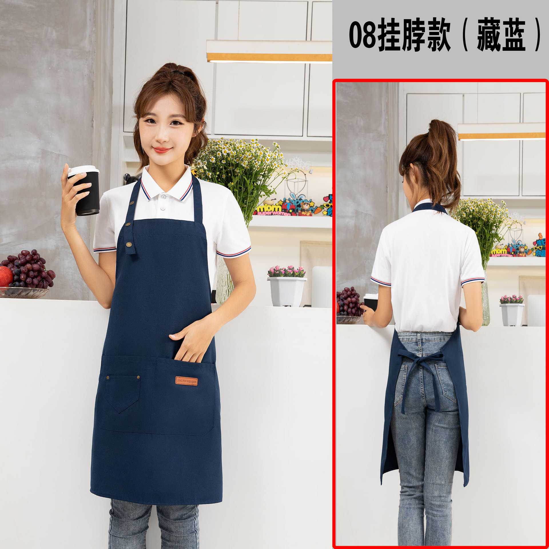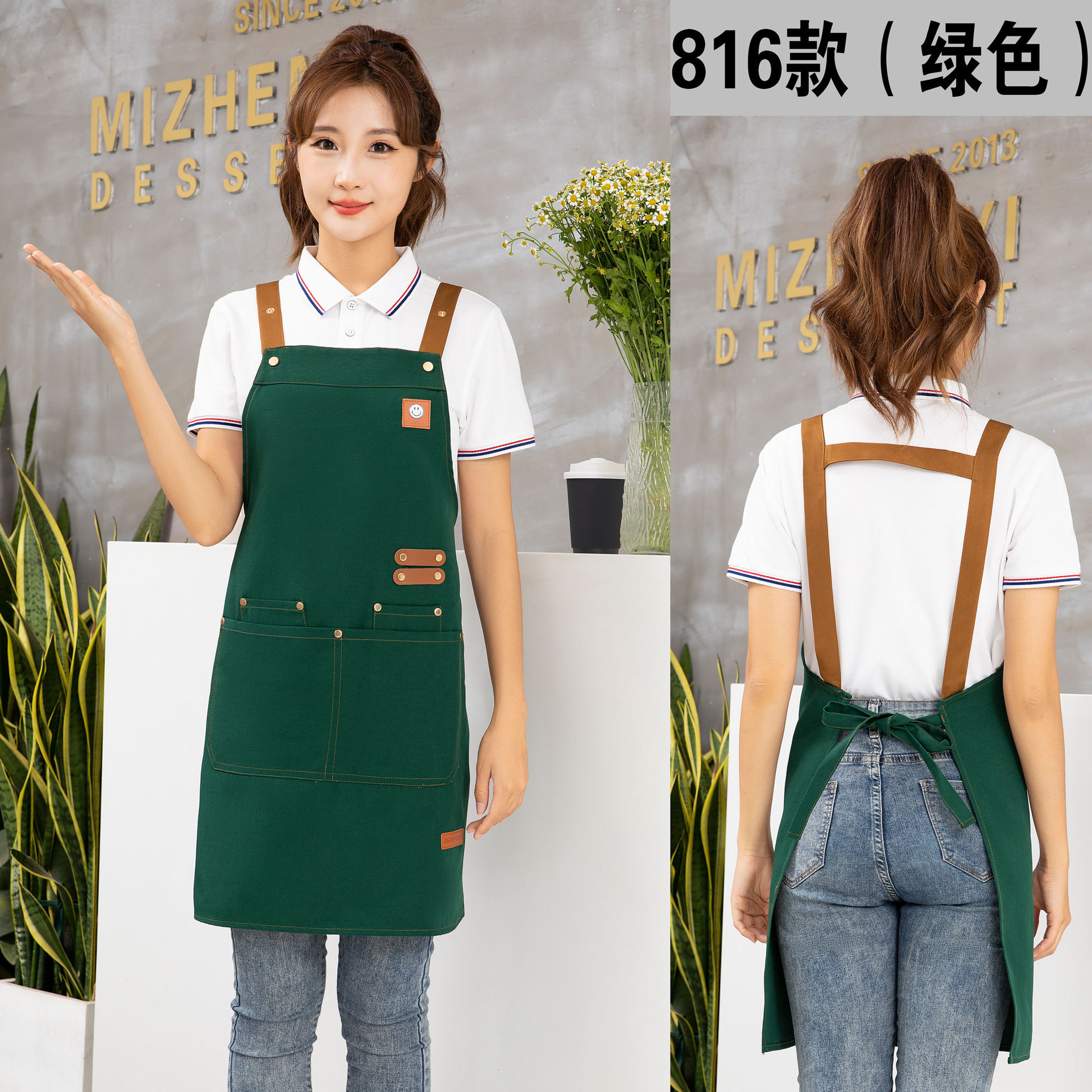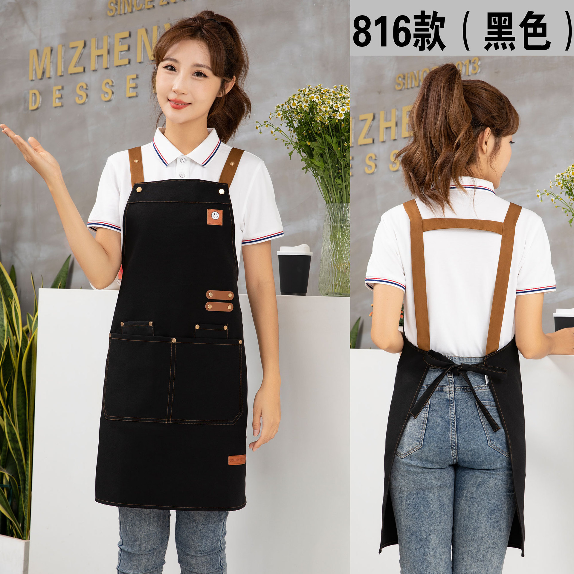 케이터링 방수 캔버스 앞치마 로고 인쇄 슈퍼마켓 웨이터 과일 커피 우유 차 가게 작업 허리 사용자 정의
