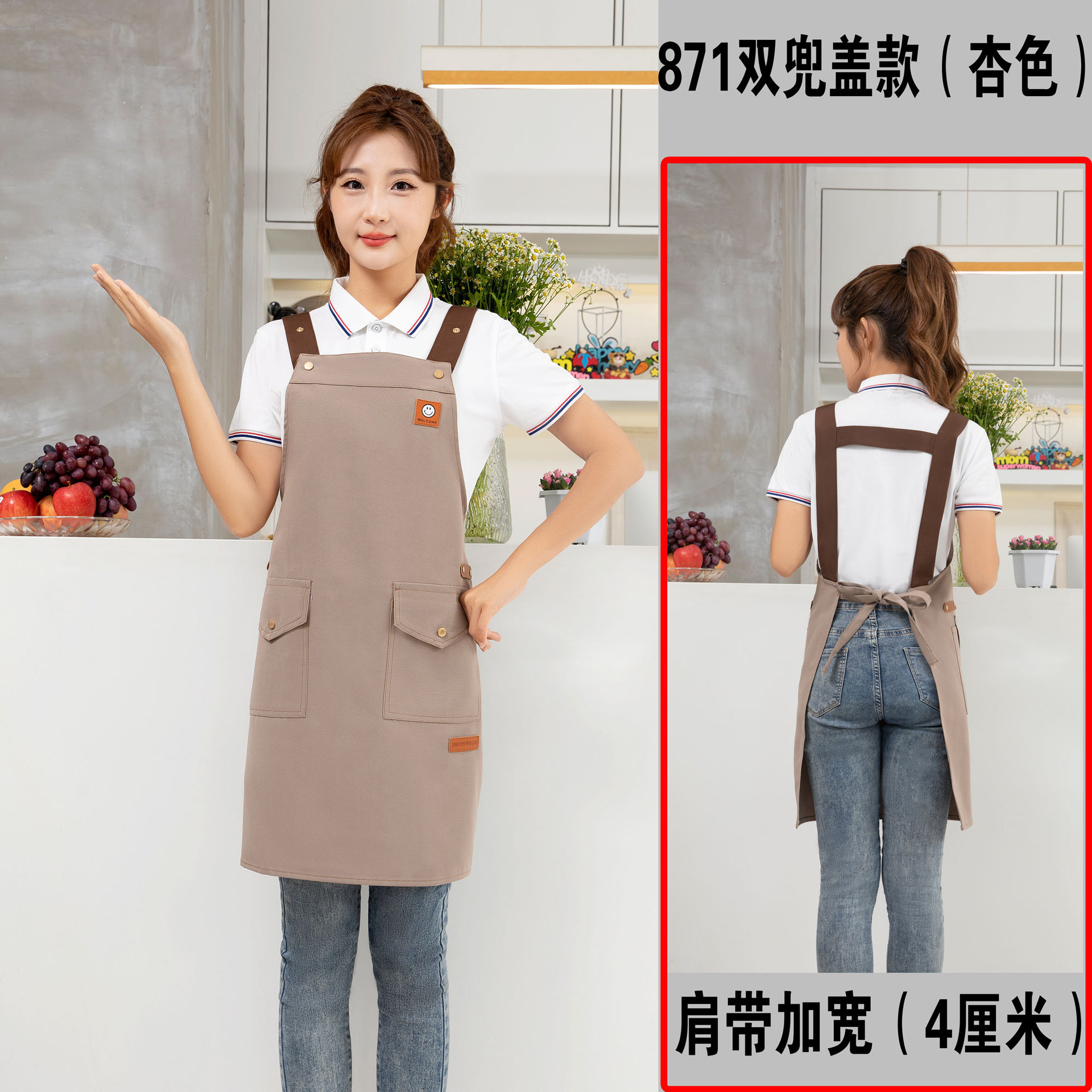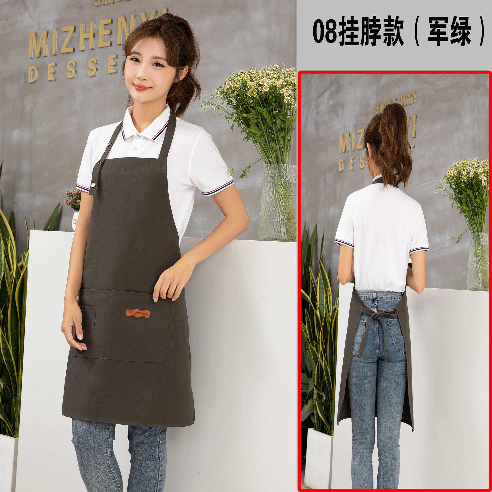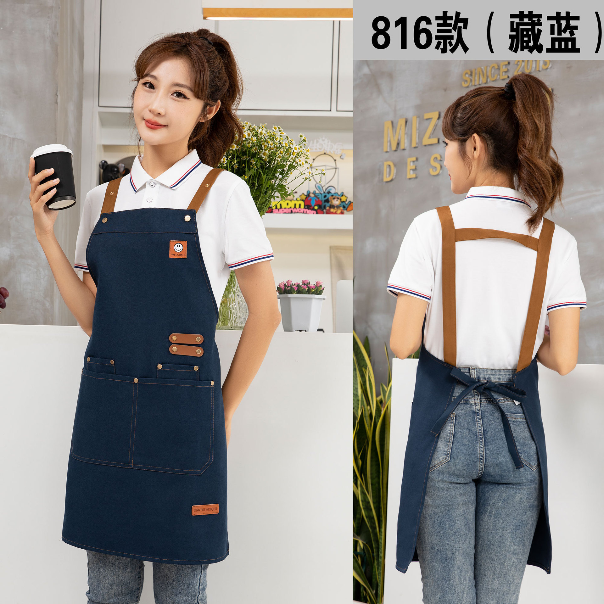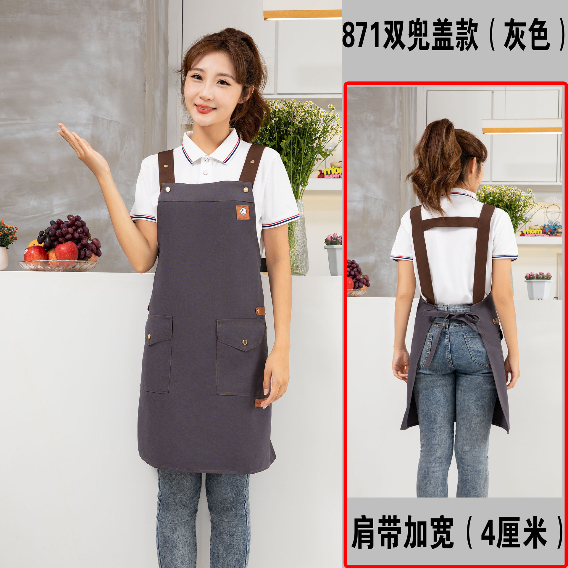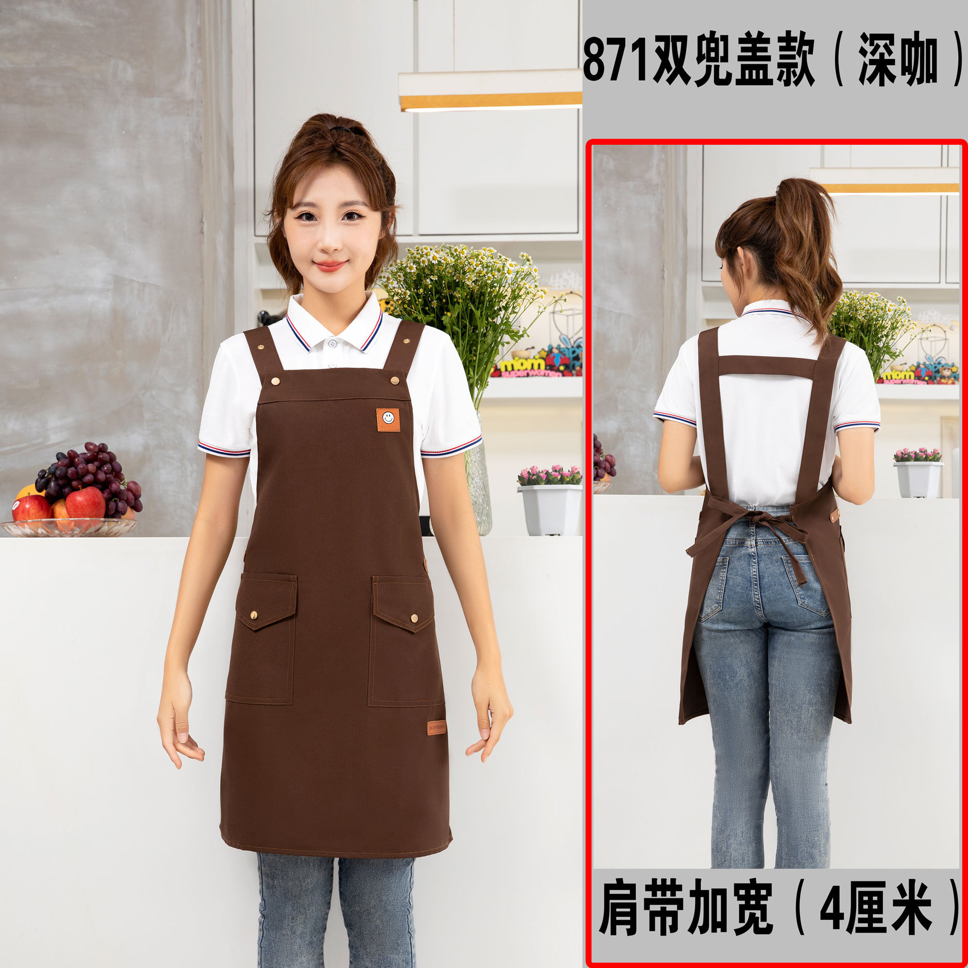케이터링 방수 캔버스 앞치마 로고 인쇄 슈퍼마켓 웨이터 과일 커피 우유 차 가게 작업 허리 사용자 정의