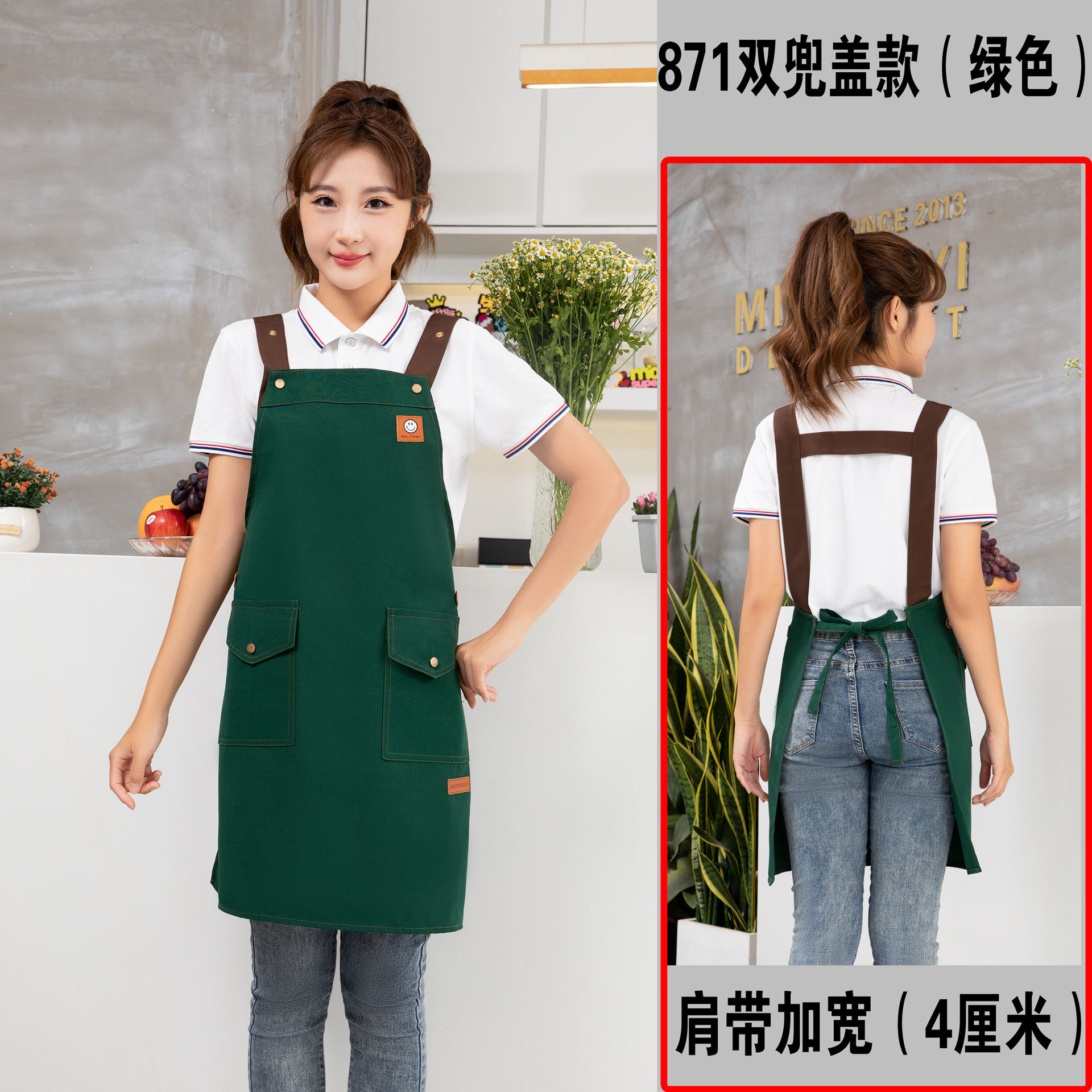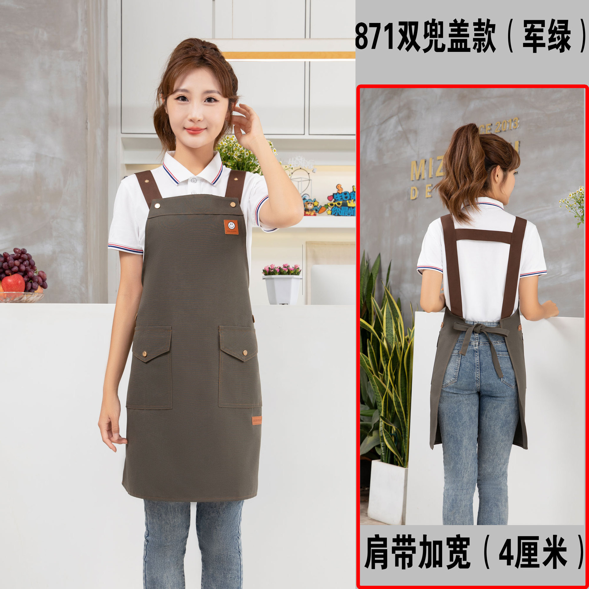 • 007 어깨끈 녹색 작업복 발수