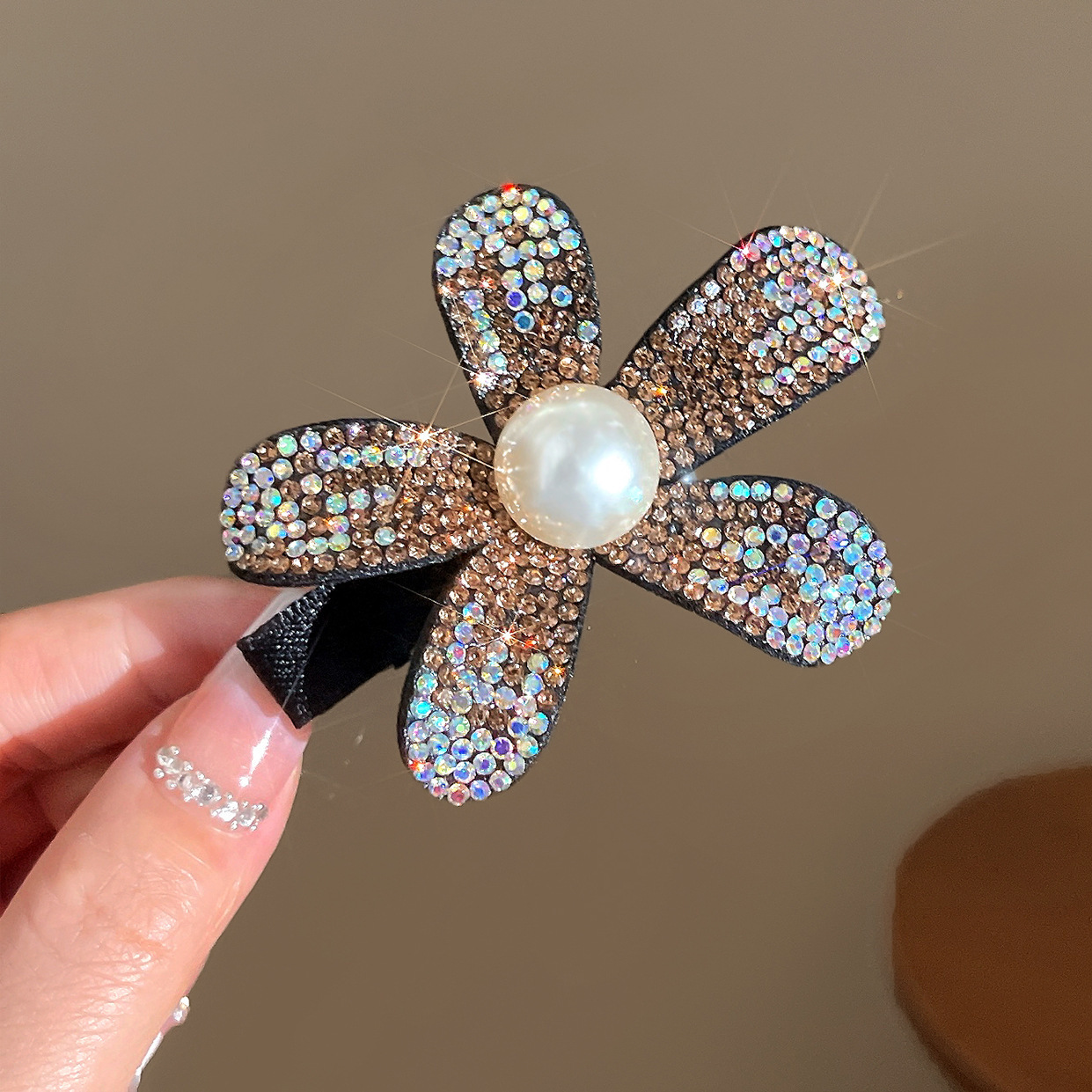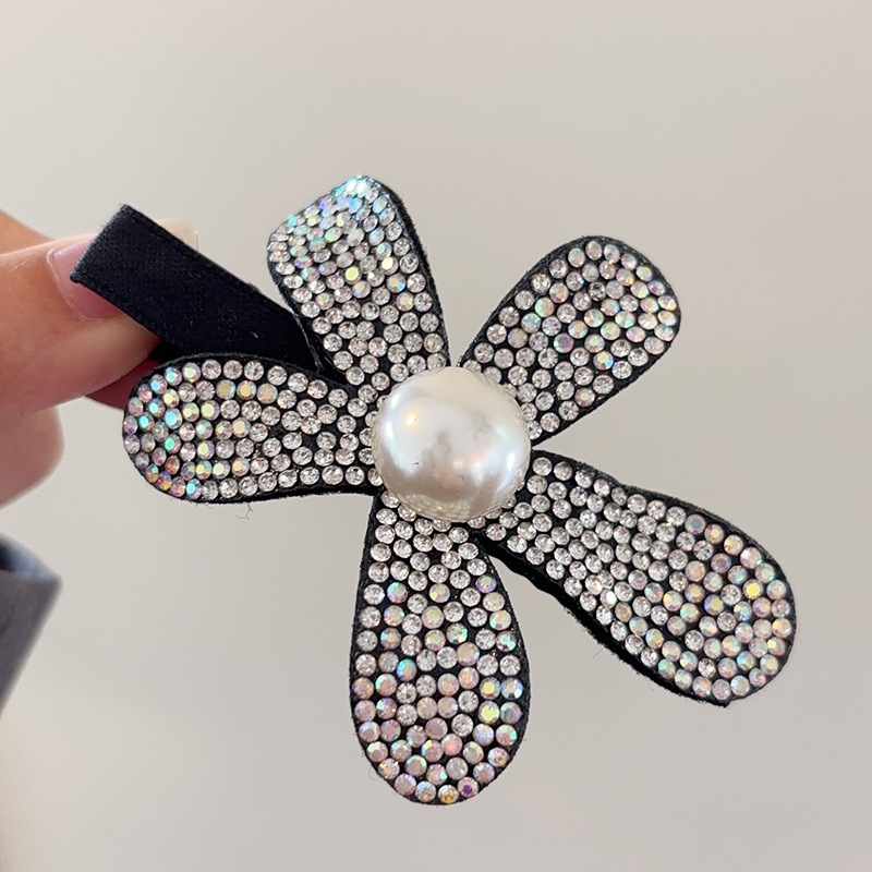 꽃 시리즈 가벼운 고급 모조 다이아몬드 기질 사이드 클립 앞머리 클립 높은 색상 가치 사진 분위기 머리핀 도매 덕빌 클립스토어 가기