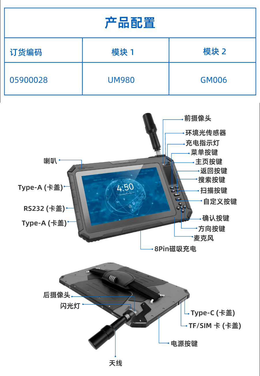 • 8+128G/회색/1200*1920/1000nits/UM960/SMA-GPS+다중 주파수 안테나