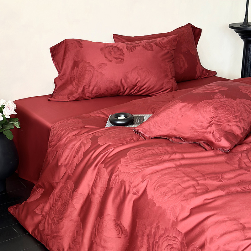 클래스 A 고급 레드 웨딩 코튼 자카드 1.8m 4 피스 웨딩 코튼 롱 스테이플 코튼 침구스토어 가기