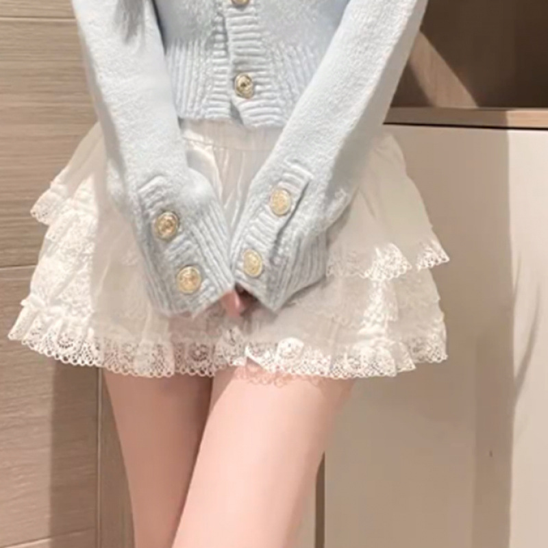 새로운 한국 스타일 우아한 부드러운 스타일 V 넥 니트 카디건 스웨터 여성의 높은 허리 슬림 A 라인 스커트 트렌디