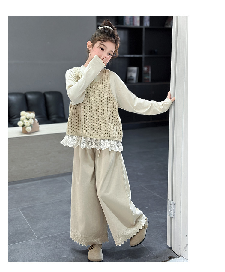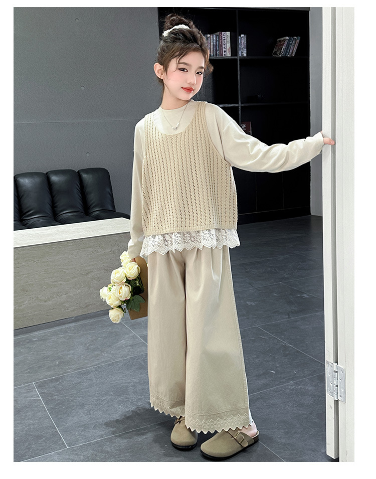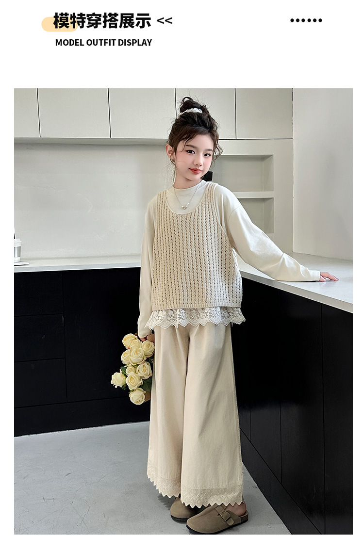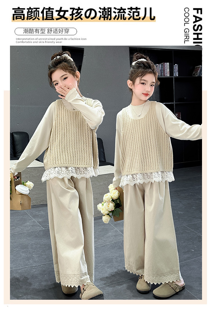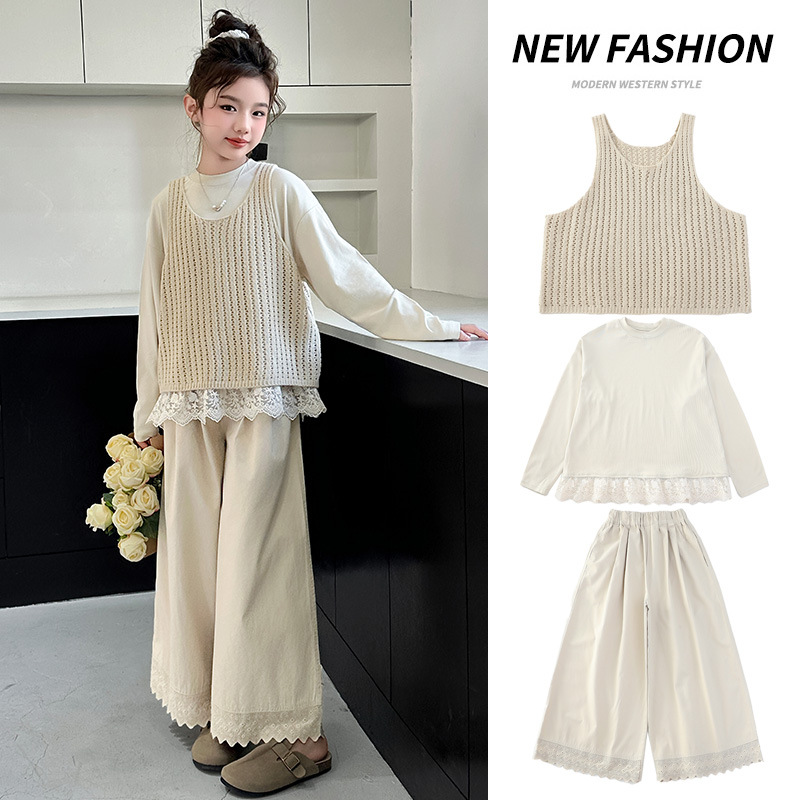 소녀 세트 2025 새로운 어린이 서양식 긴 소매 봄 원피스 큰 어린이 한국 스타일 프라이드 스트리트 조끼 3 피스 세트스토어 가기