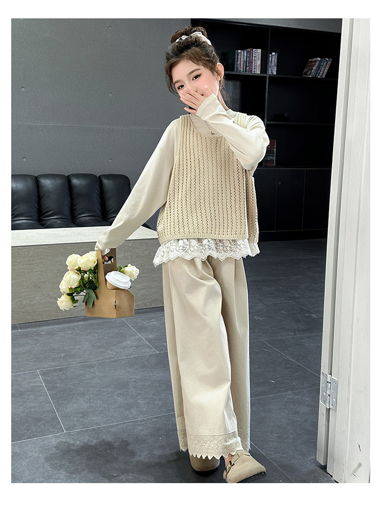 소녀 세트 2025 새로운 어린이 서양식 긴 소매 봄 원피스 큰 어린이 한국 스타일 프라이드 스트리트 조끼 3 피스 세트