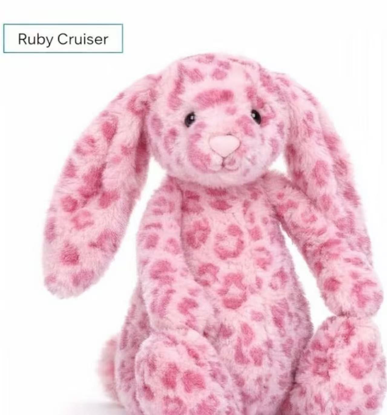 • 진한 핑크 플로럴 토끼 인형 + 더스트백