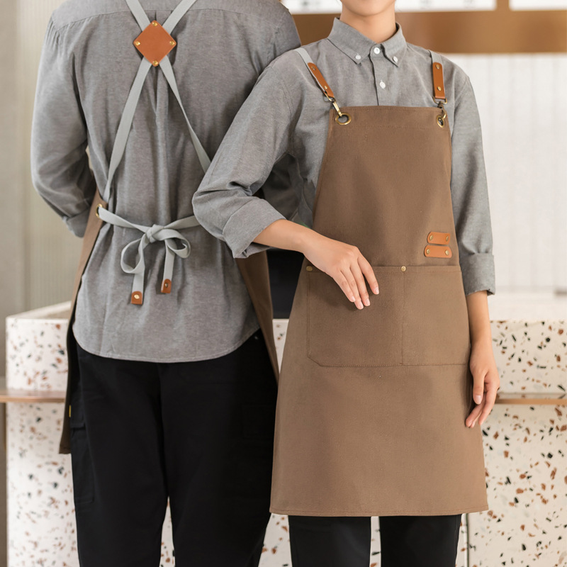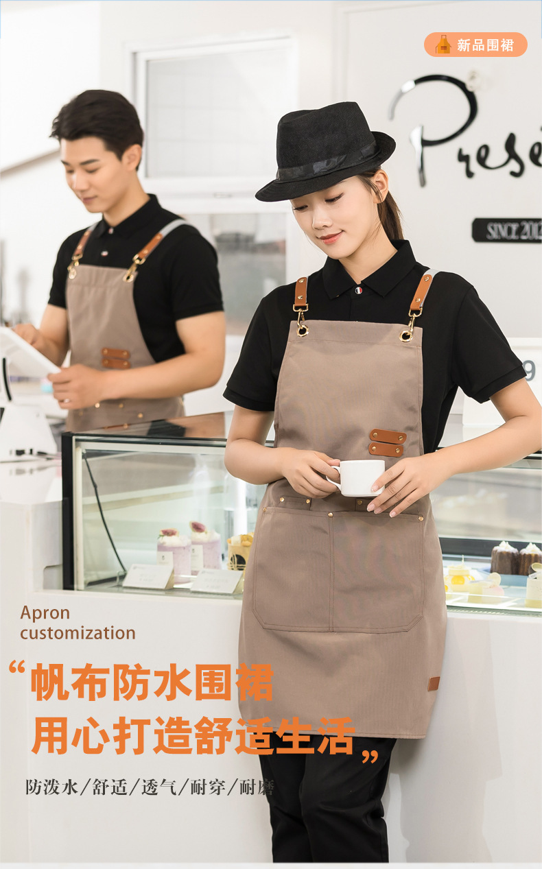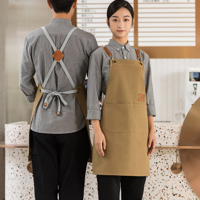 캔버스 앞치마 로고 인쇄 맞춤형 케이터링 우유 차 가게 꽃 가게 슈퍼마켓 케이크 가게 여성을위한 특별한 방수 작업 옷