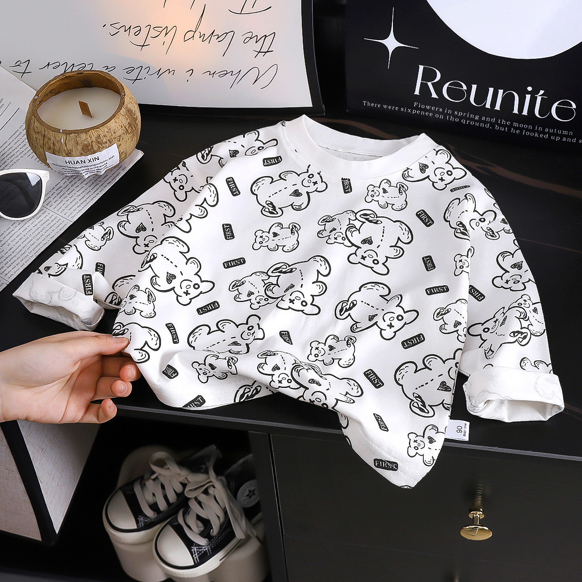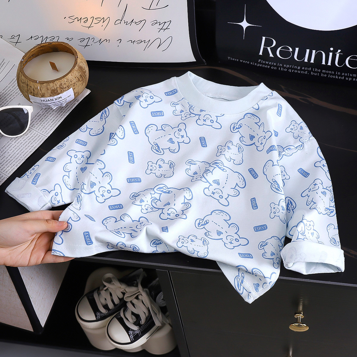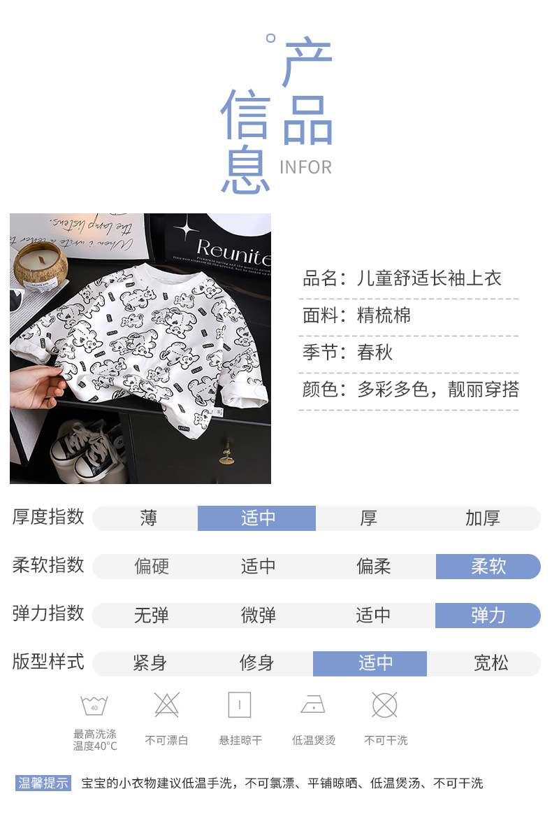 어린이 면 긴팔 티셔츠 아기의 봄 새 싱글 탑 풀 프린트 내국어베이스 셔츠스토어 가기