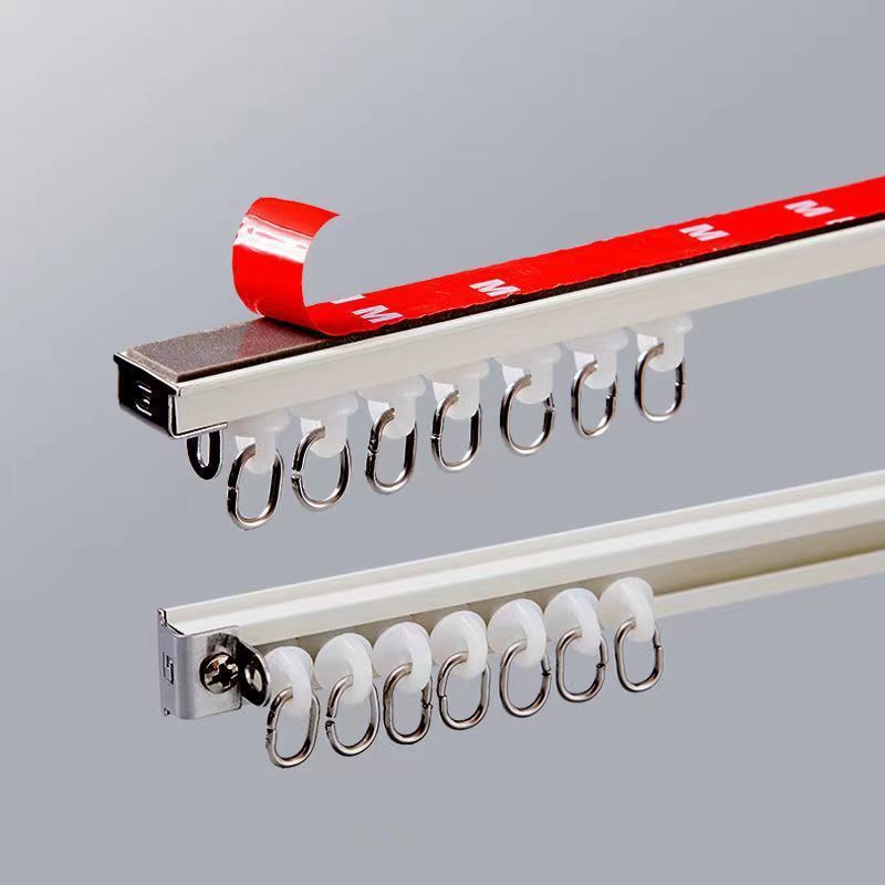 두꺼운 알루미늄 합금 비 천공 커튼 트랙 도르래 슬라이드 레일 더블 트랙 스트레이트 트랙 커튼 로드 상단 장착 측면 장착