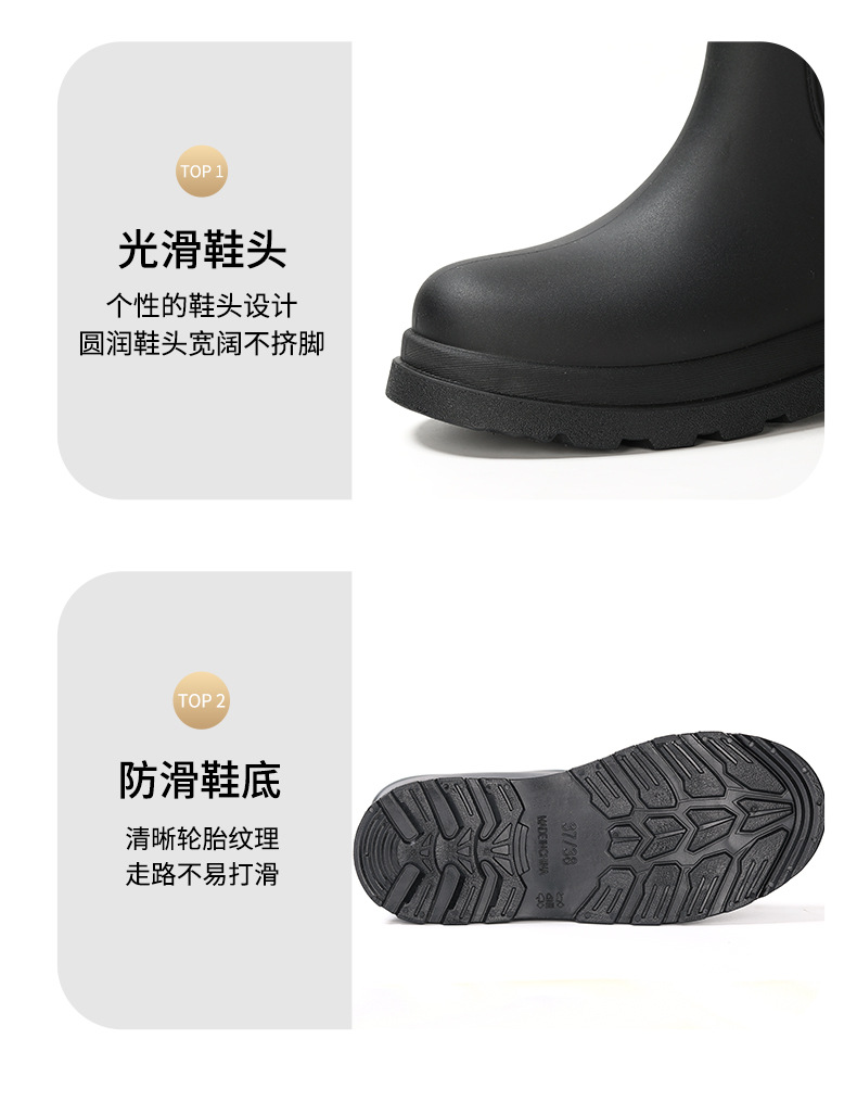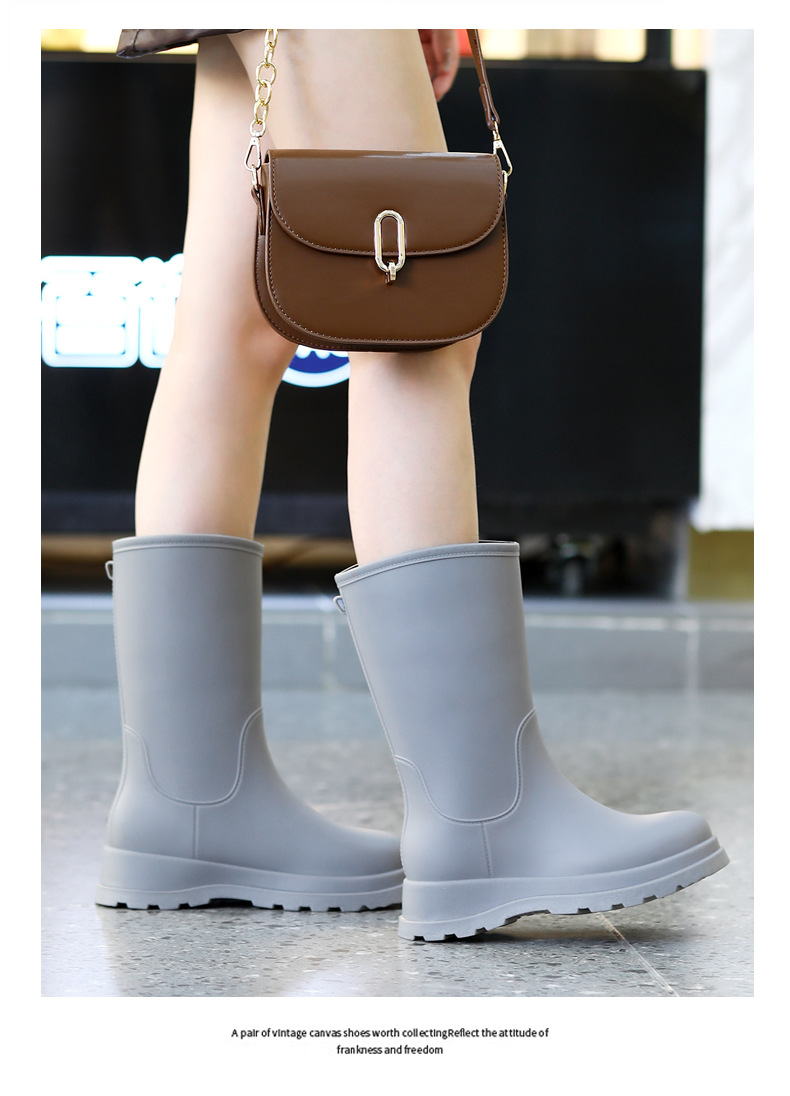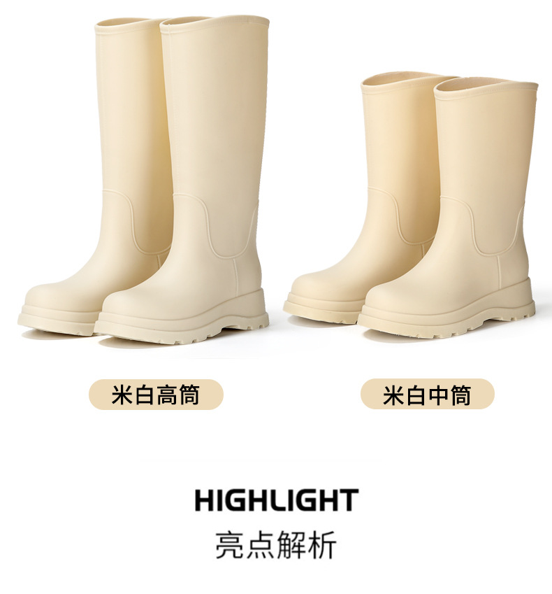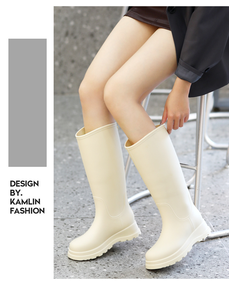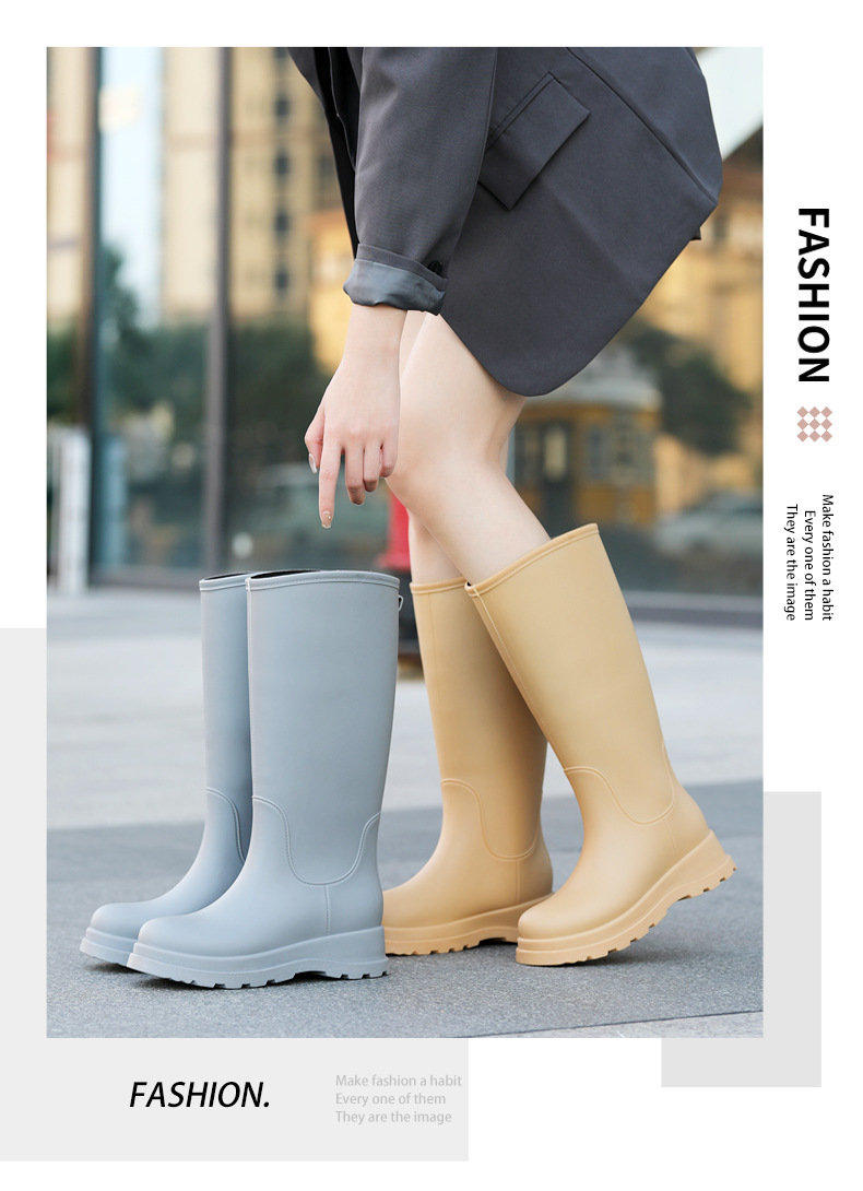 국경 간 높은 금지 비 신발 여성의 유행 외부 착용 미끄럼 방지 한국 방수 신발 내마모성 통합 고무 신발 주방 긴 금지 부드러운 바닥