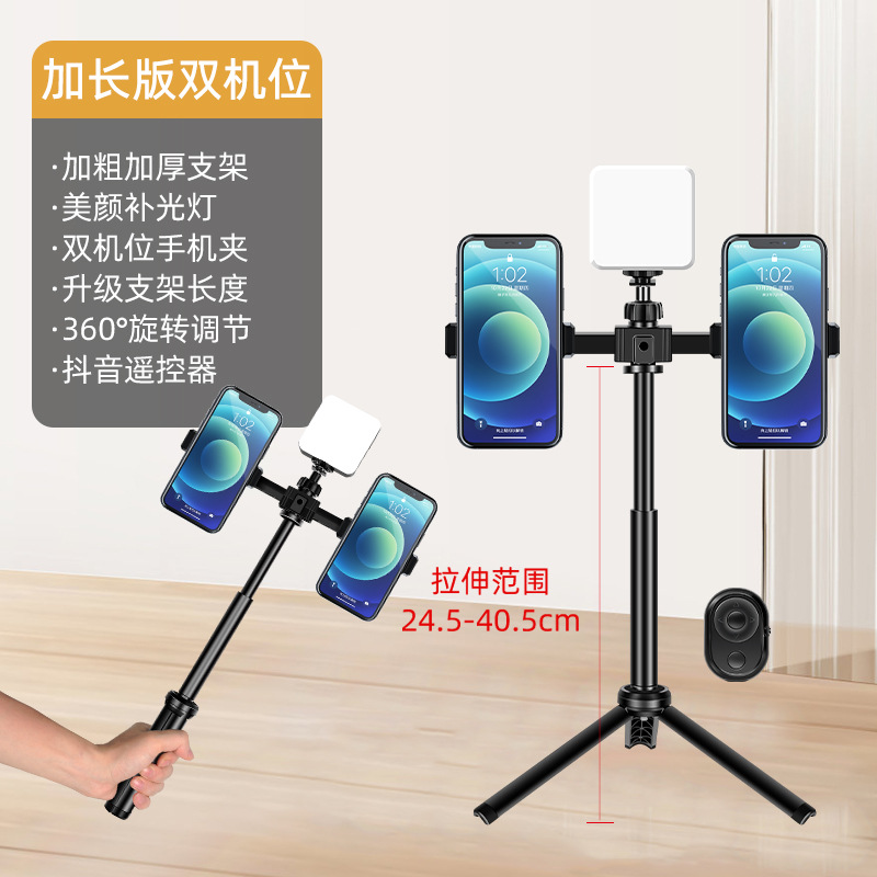 더블 휴대 전화 촬영 브래킷 휴대용 야외 라이브 삼각대 채우기 가벼운 비디오 자동차 4S 상점 자동 쇼 떨림