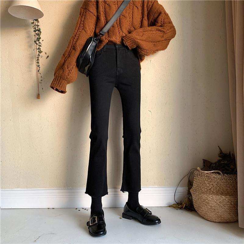 블랙 슬레이 르 청바지 여성 여름 새로운 높은 허리 딥 한국 스타일 슬림 룩 느슨한 스트레치 트렌디 플라 드 팬츠스토어 가기