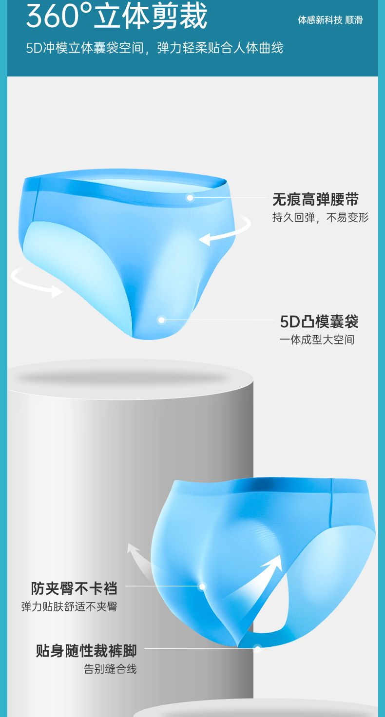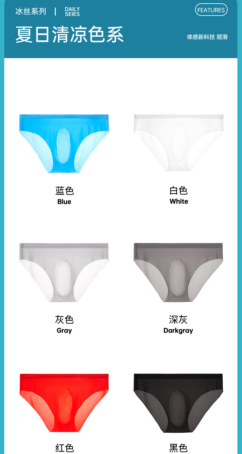 남성용 아이스 실크 삼각팬티 얇고 통기성 좋으며 빠르게 건조되는 3D 일체형 무봉제 팬티 여름철 해외 인기 상품스토어 가기