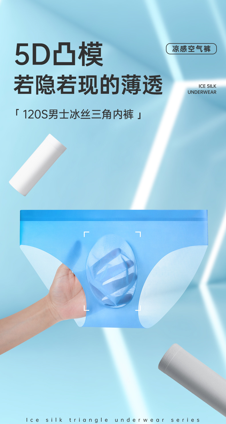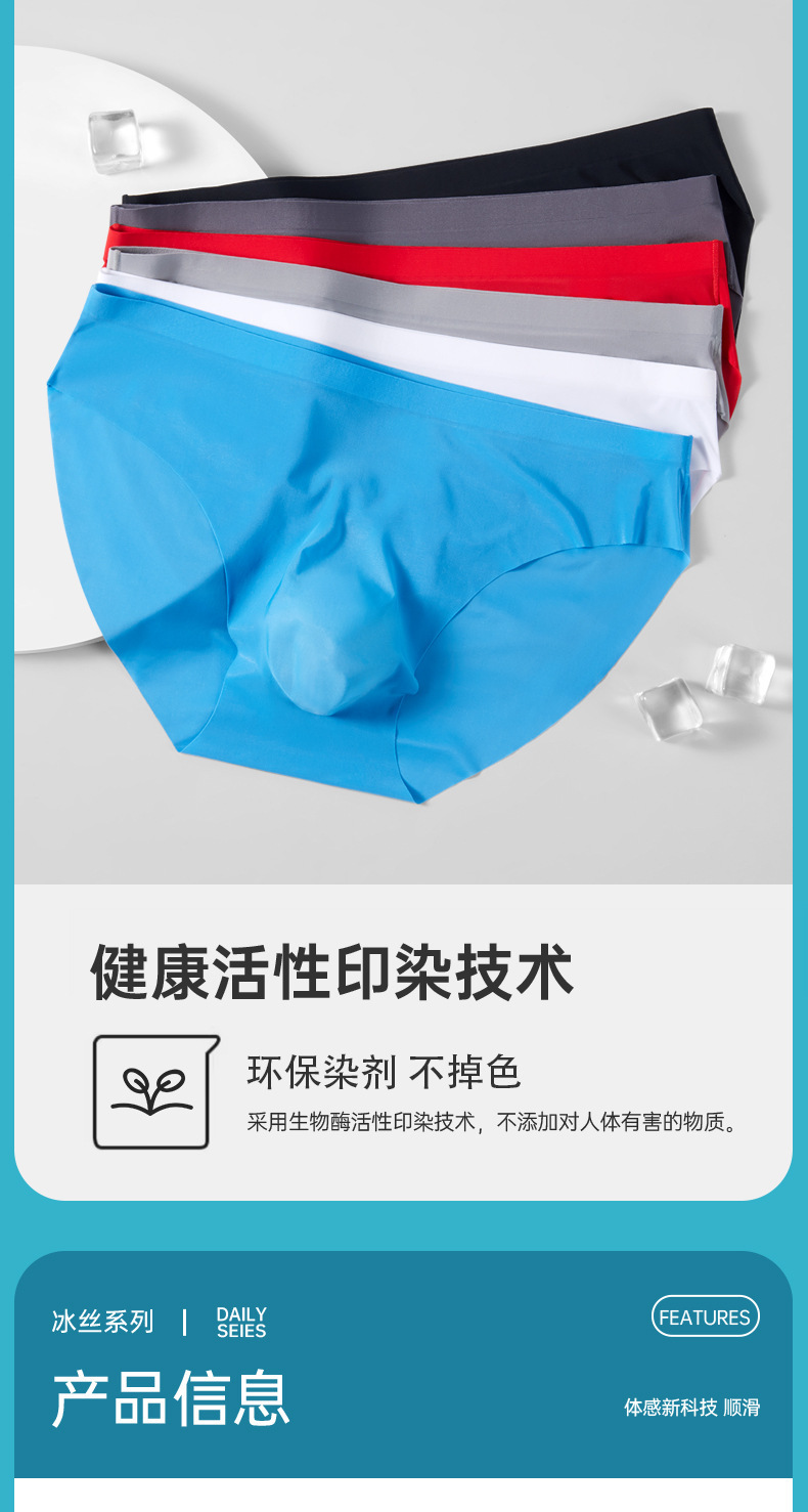 남성용 아이스 실크 삼각팬티 얇고 통기성 좋으며 빠르게 건조되는 3D 일체형 무봉제 팬티 여름철 해외 인기 상품