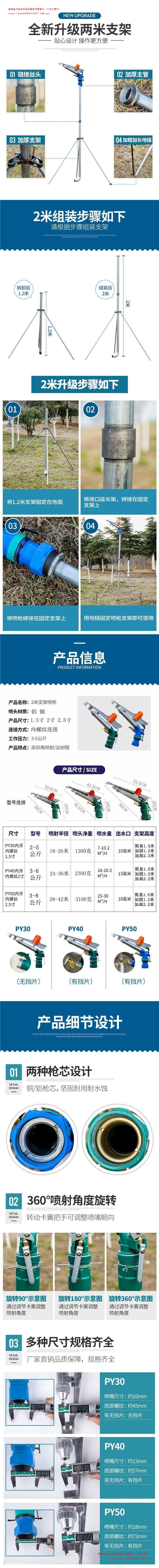• PY40/ 2inch 구리 코어 스프레이 건 - 스프레이 건 + 2.2m 새 브래킷 / 2inch 하프 워터 호스에 연결
