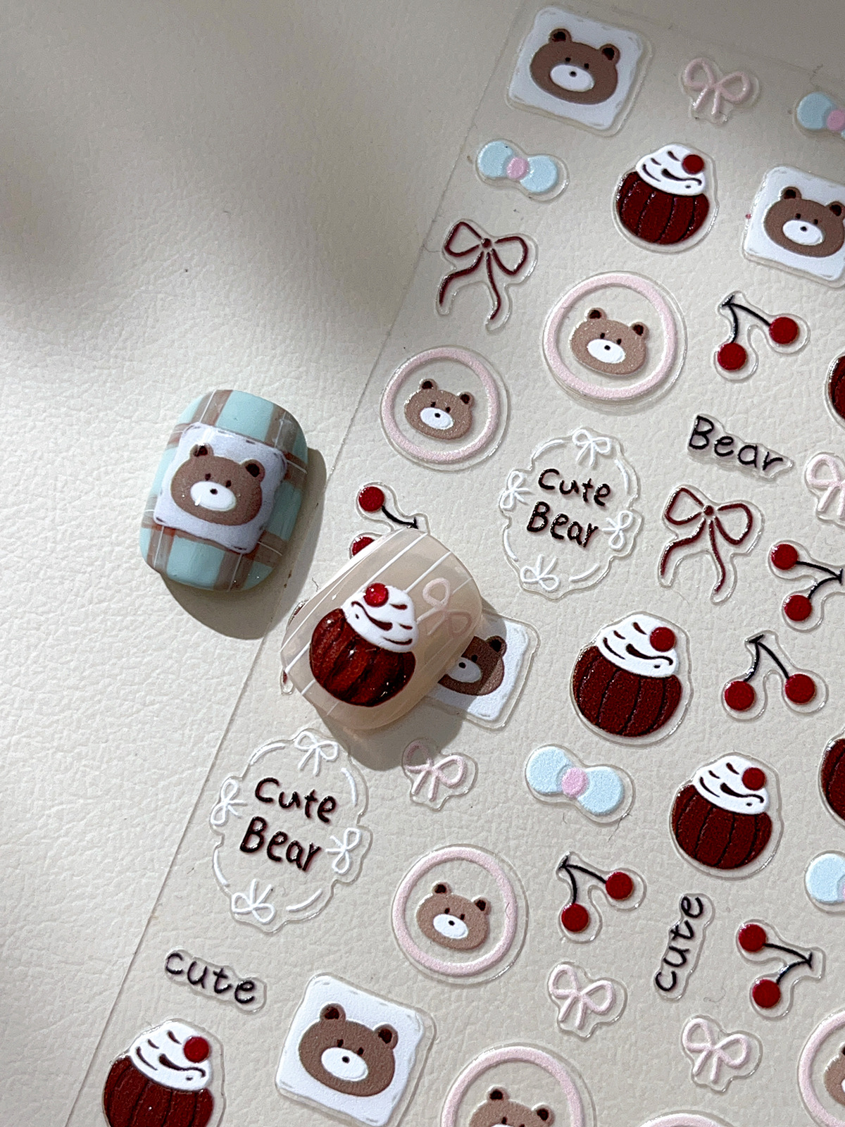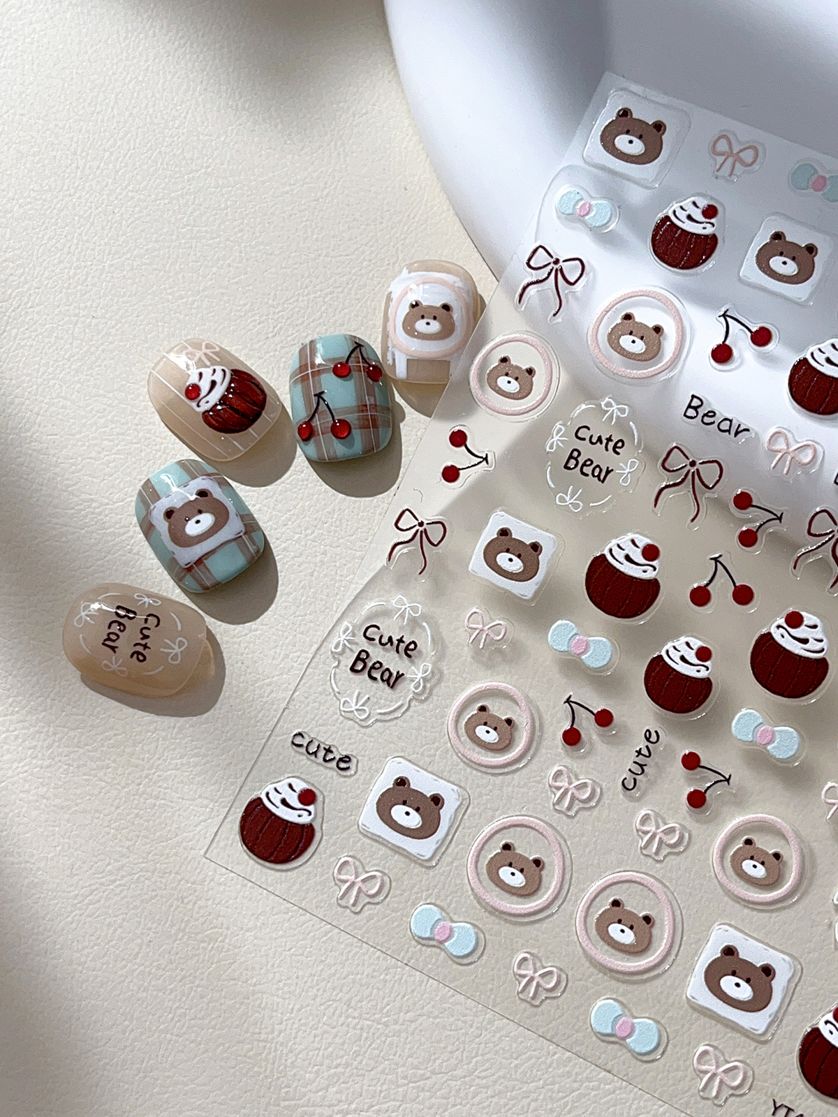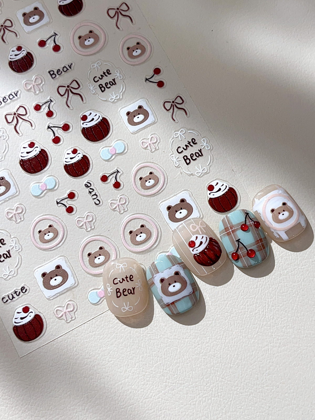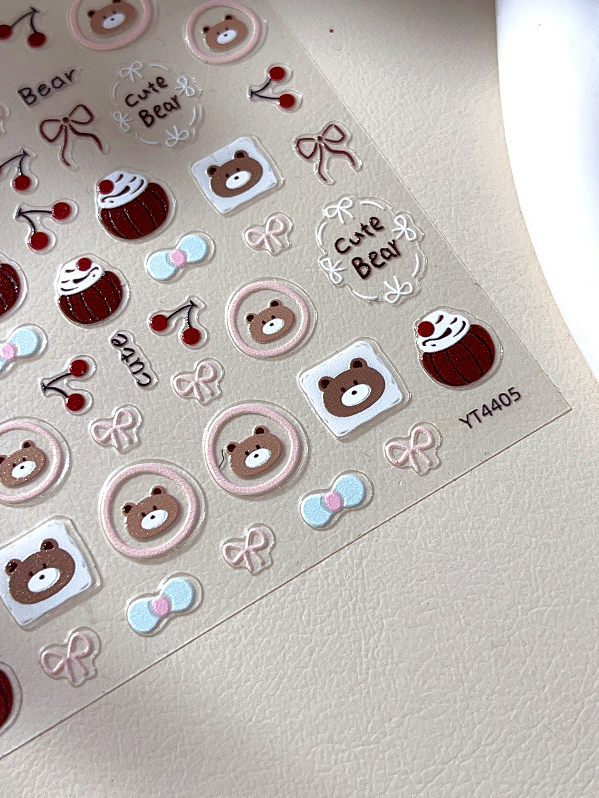 YITU 개미 그림 구호 만화 곰 네일 아트 스티커 영어 활 체리 귀여운 장식 스티커 YT4405