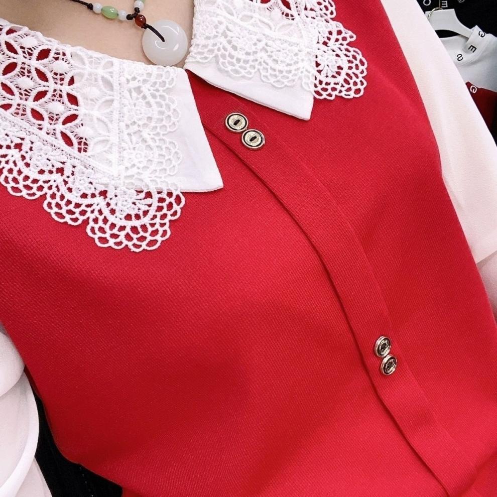 새로운 2025 봄과 가을 레이스 레이스 작은 셔츠 조심스럽게 서양식 시대 감소 고급 인터넷 레드 인형베이스