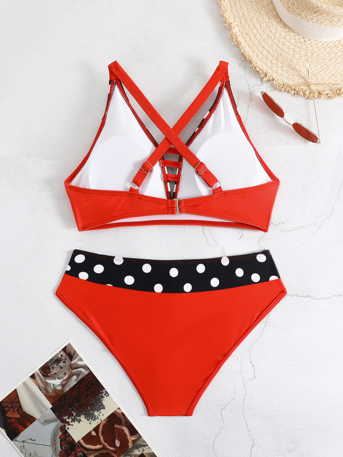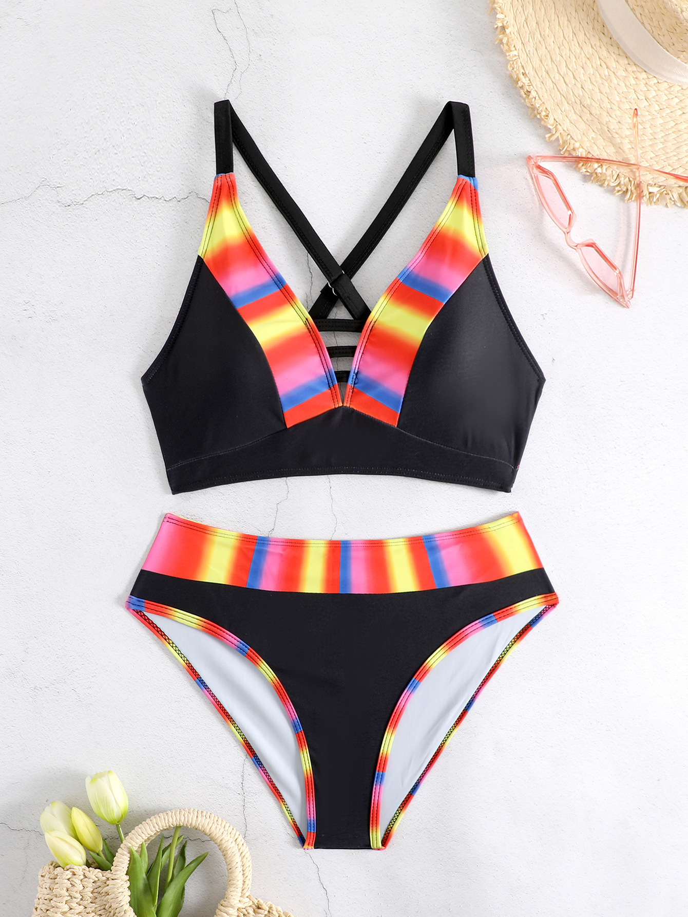 2025 유럽과 미국 대외 무역 새로운 밝은 라인 컬러 블루밍 분할 비키니 그라디언트 수영복 국경