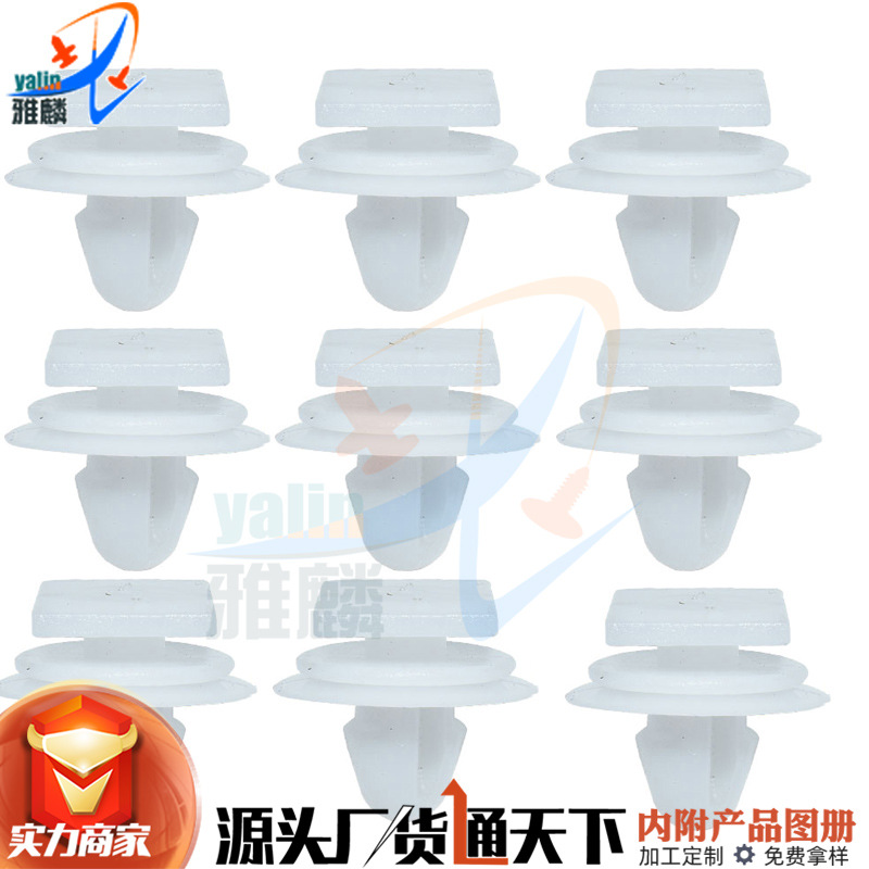 汽车位置用卡扣;汽车顶棚卡扣丰皮铆钉;内饰板卡扣;门饰板卡扣;护板卡扣;底边梁卡扣;座椅卡扣固定卡子;灯扣快丝座子贡螺丝;汽车锁扣;流水条卡扣;后备箱卡扣;叶子板内衬卡扣;机盖隔热板卡扣;隔热棉卡子;密封条卡扣;轮门卡扣;支撑杆卡扣;玻璃托卡扣;玻璃扣;脚垫卡扣;子母扣;双合扣;压条卡扣;保险杠卡扣(前杠 后杠);中网卡扣;机盖扣;穿芯钉;穿心钉;窗帘扣;地板扣;地毯扣;水管卡;油管卡;线卡;德式卡箍;美食喉箍;强力水管卡子;喷水嘴卡扣;压条钉;门提;门保险;开尾销钉;膨胀扣;膨胀螺丝;螺丝扣;膨胀螺丝扣;抽芯钉;胶墩;衬套;金属叶子板螺丝;铁片;螺钉;螺母;铁卡子