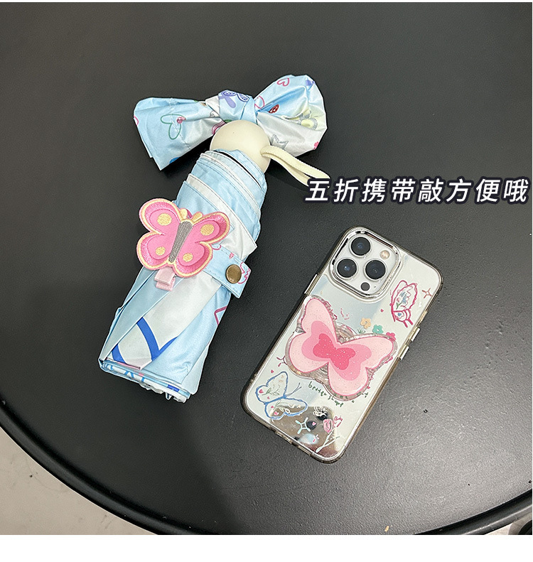 사랑 나비 우산 접히는 자동 검은 태양 우산 맑고 비오는 이중 사용 여성의 선 스크린 및 UV 보호 햇빛