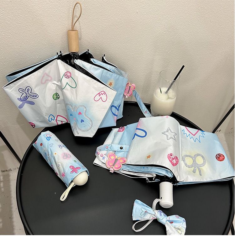 사랑 나비 우산 접히는 자동 검은 태양 우산 맑고 비오는 이중 사용 여성의 선 스크린 및 UV 보호 햇빛스토어 가기