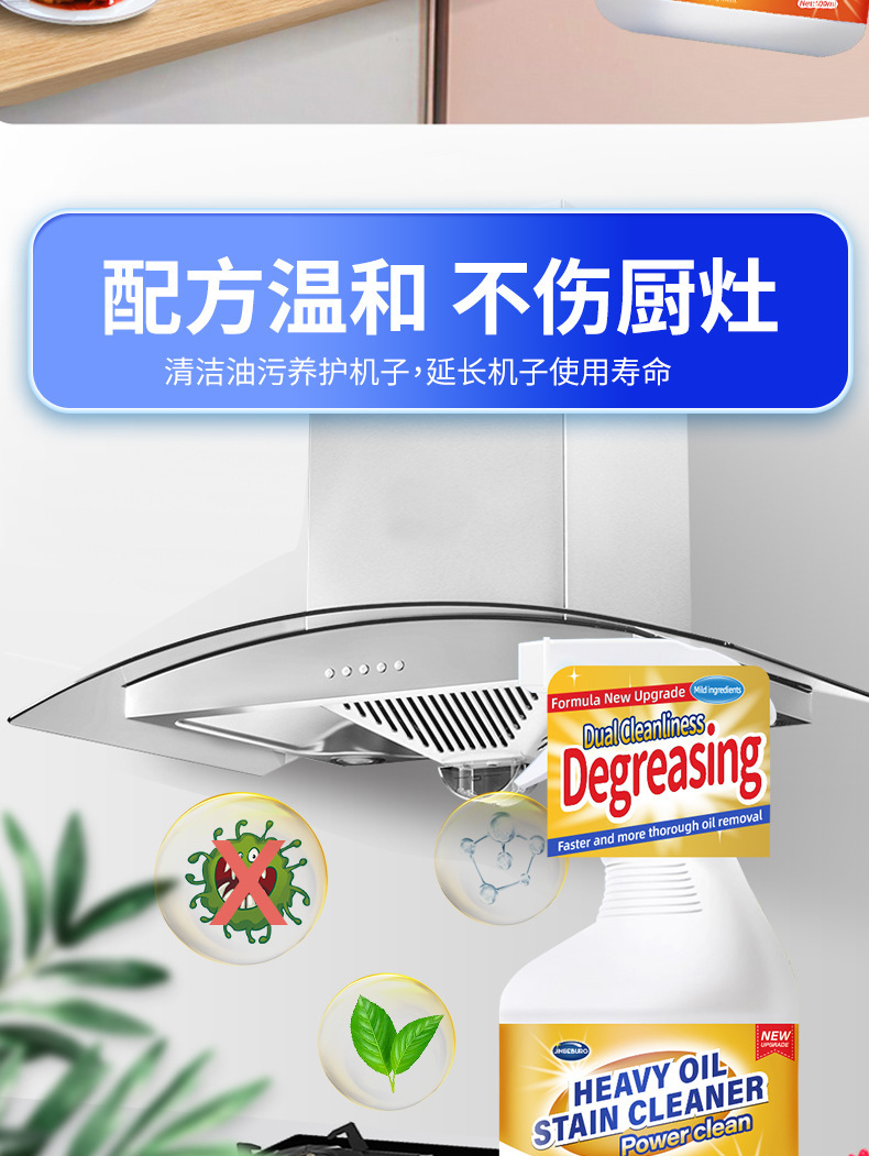 주방 연기 기계 강력한 오일 얼룩 제거 청소 에이전트 식탁 무거운 오일 얼룩 청소 에이전트 스토브 오일 얼룩 제거 인공물