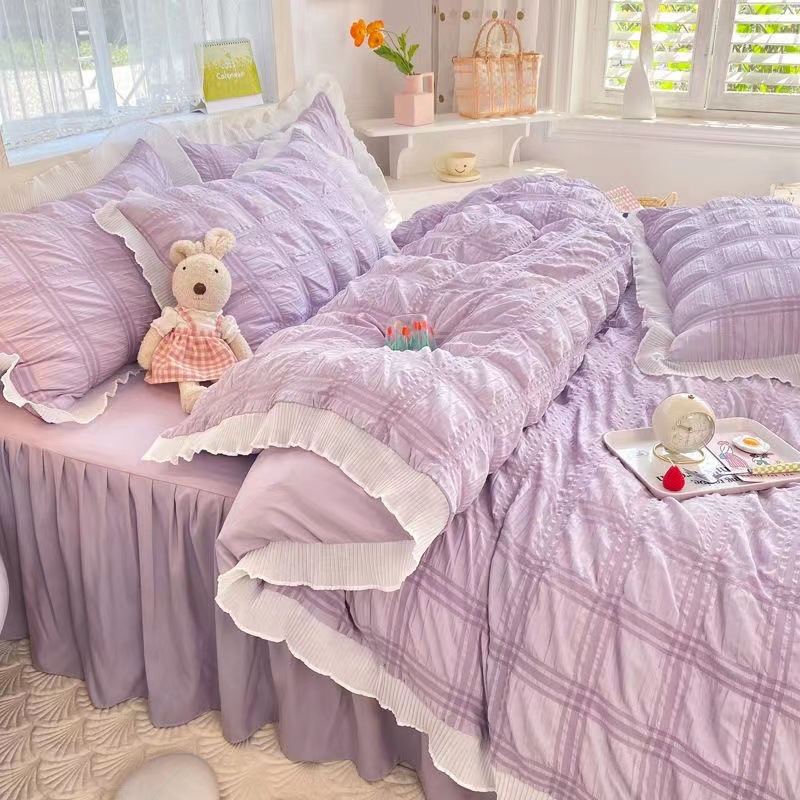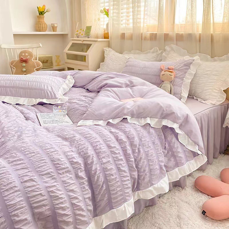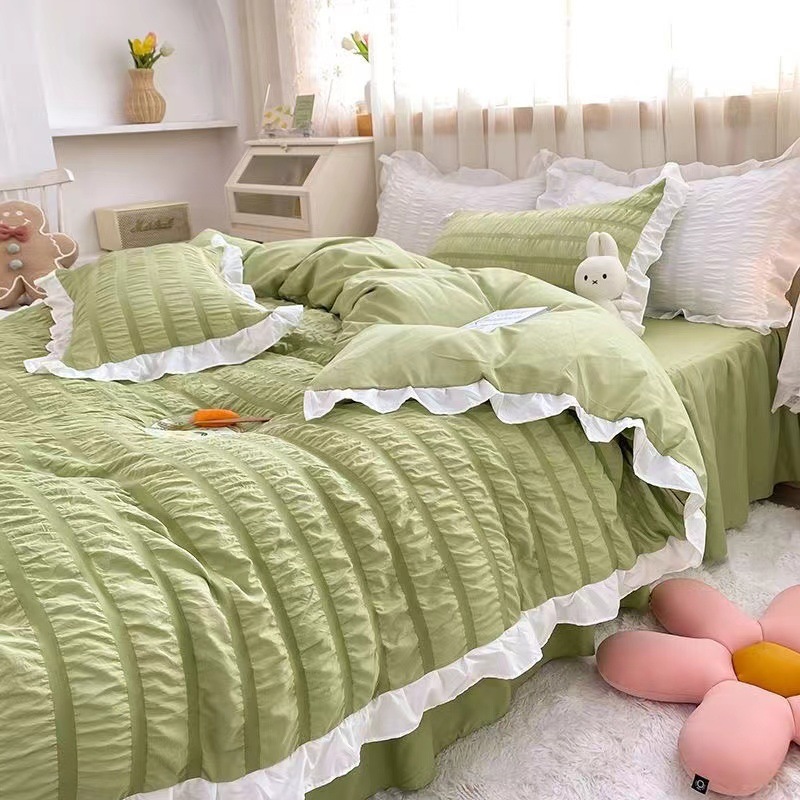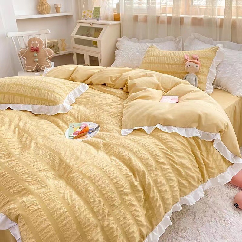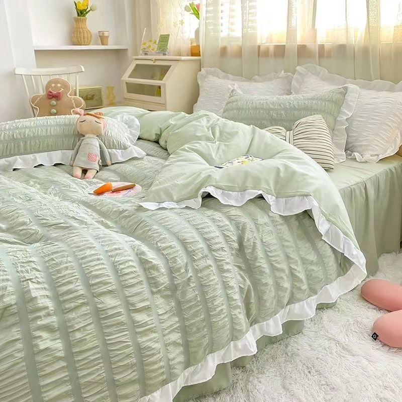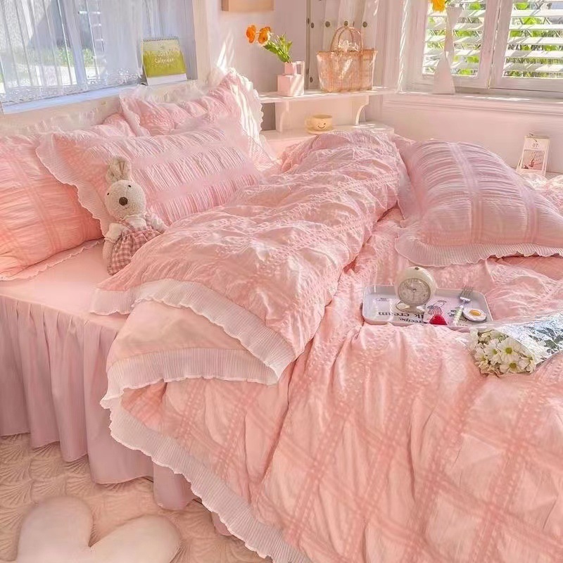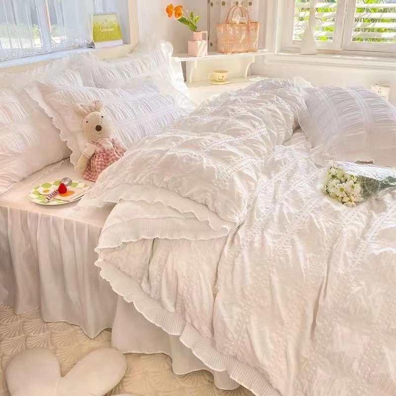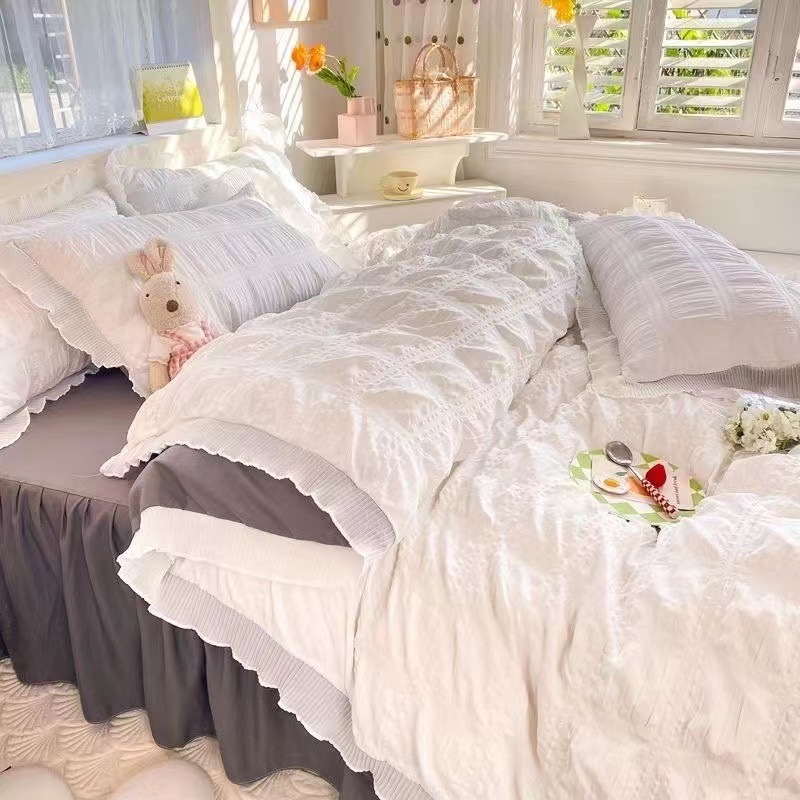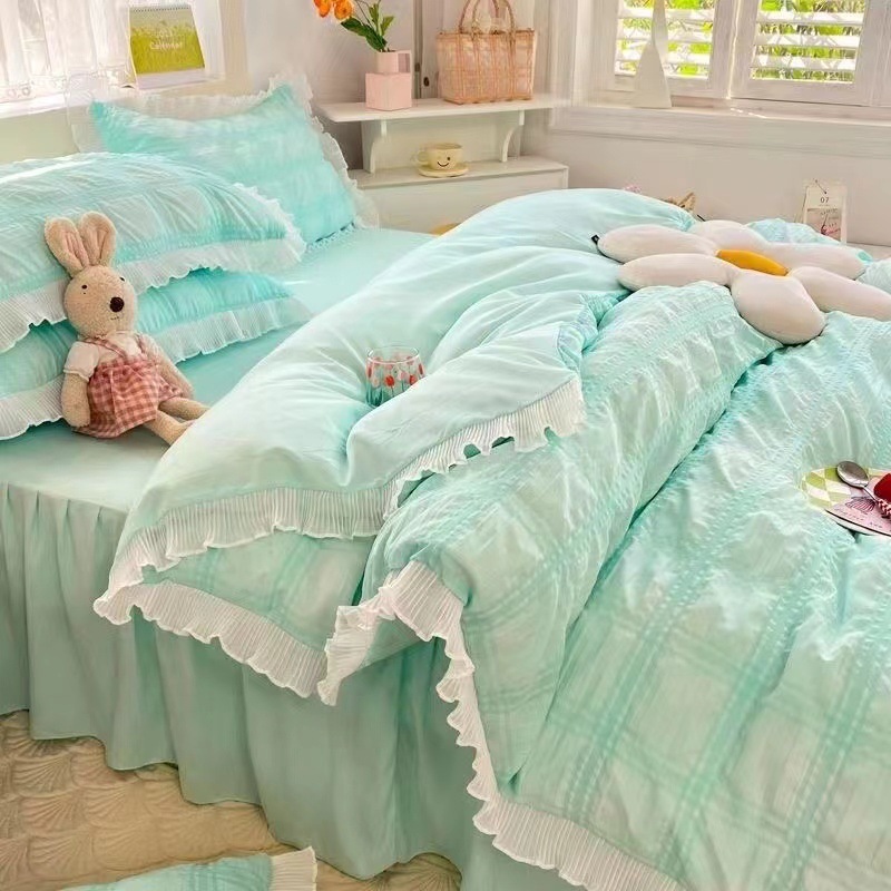 Ins 작은 신선한 거품 시리즈 컬러 레이스 침대 시트 모자 침대 치마 4 종 세트 학생 기숙사 3 종 세트