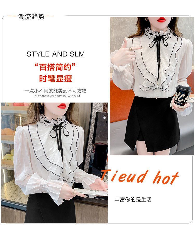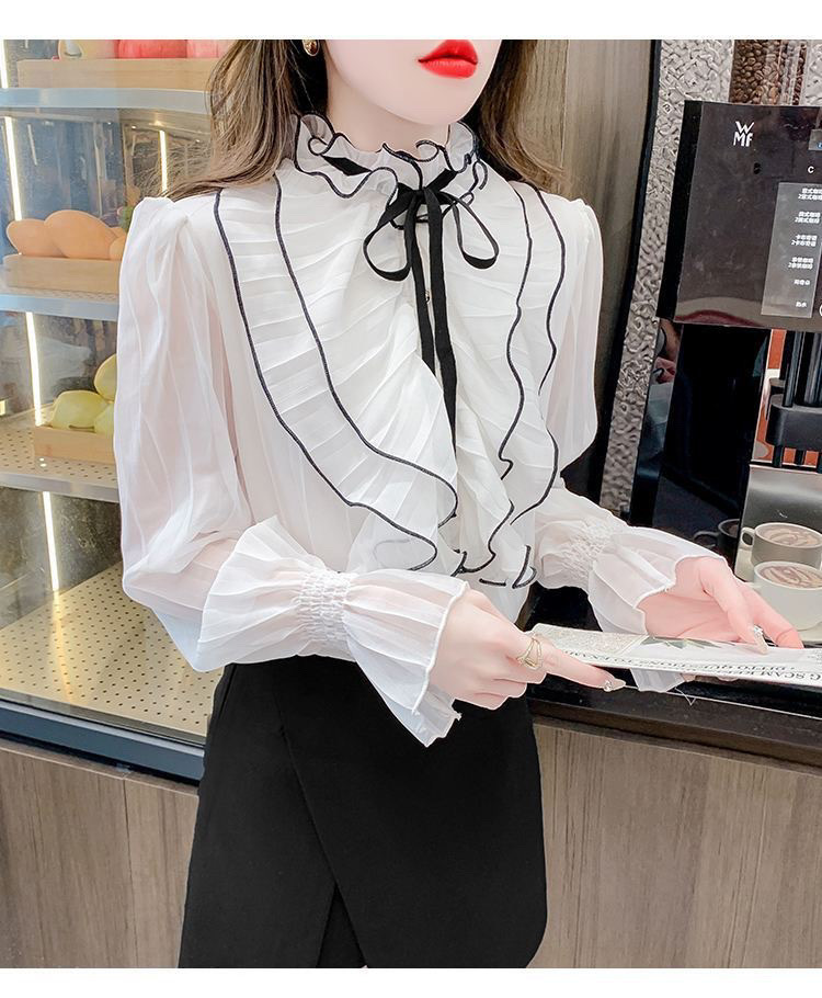2025 봄과 가을 새로운 귀 화이트 셔츠 디자인 스타일 긴 소매 프랑스 연꽃 잎 셔츠 탑