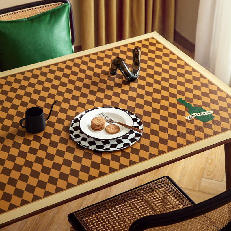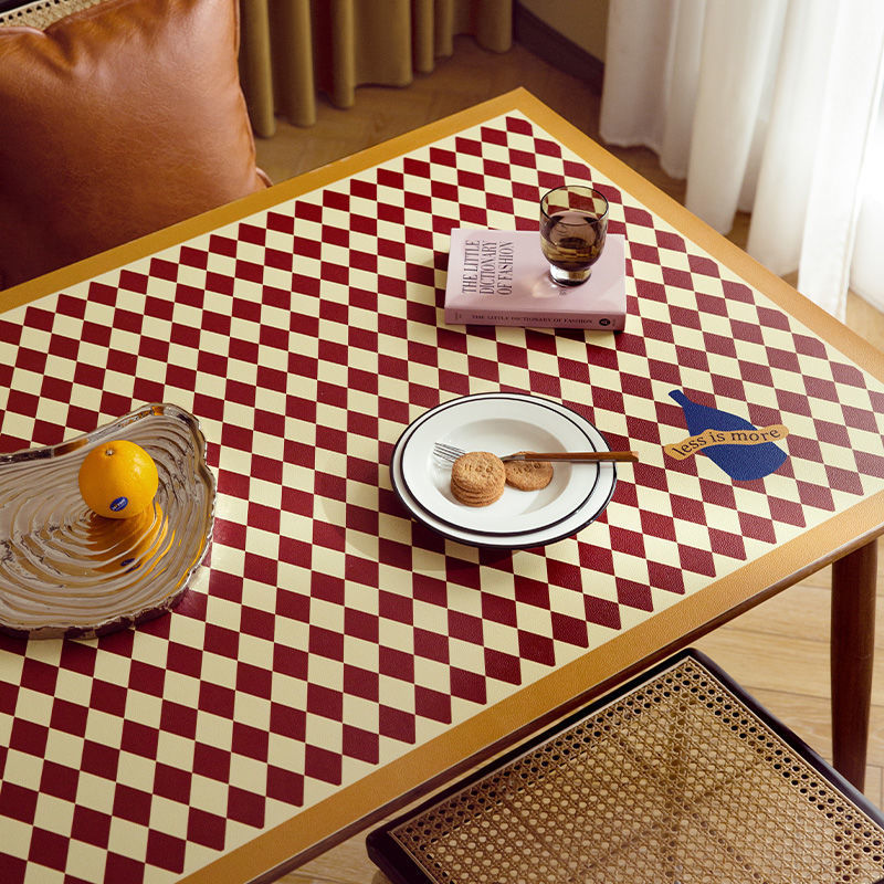 북유럽 스타일 테이블 매트 인 스타일 빈티지 체크 보드 가죽 테이블 매트 탁상용 매트 방수 오일 방지 세척 방지