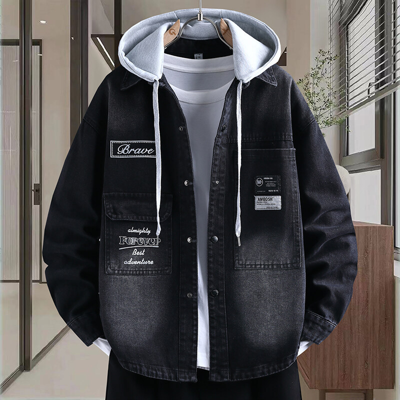 남자 데님 재킷 봄과 가을 캐주얼 겉옷 십대 잘 생긴 고등학교 학생 유행 가을 올 매치 재킷스토어 가기