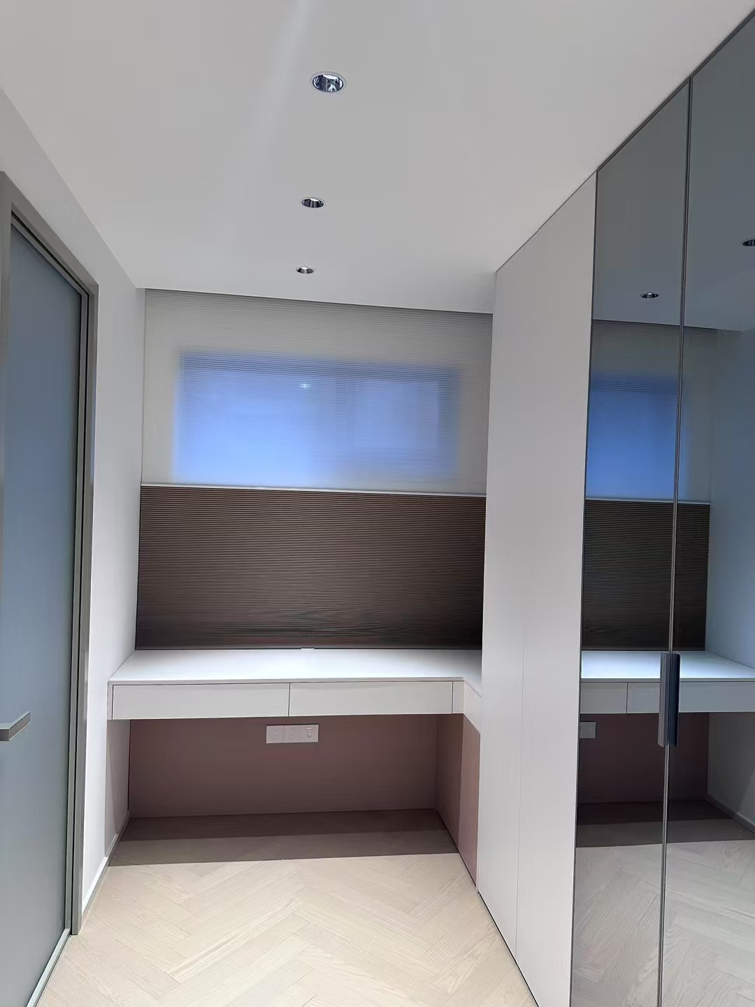 一半遮光,一半采光。一键调控