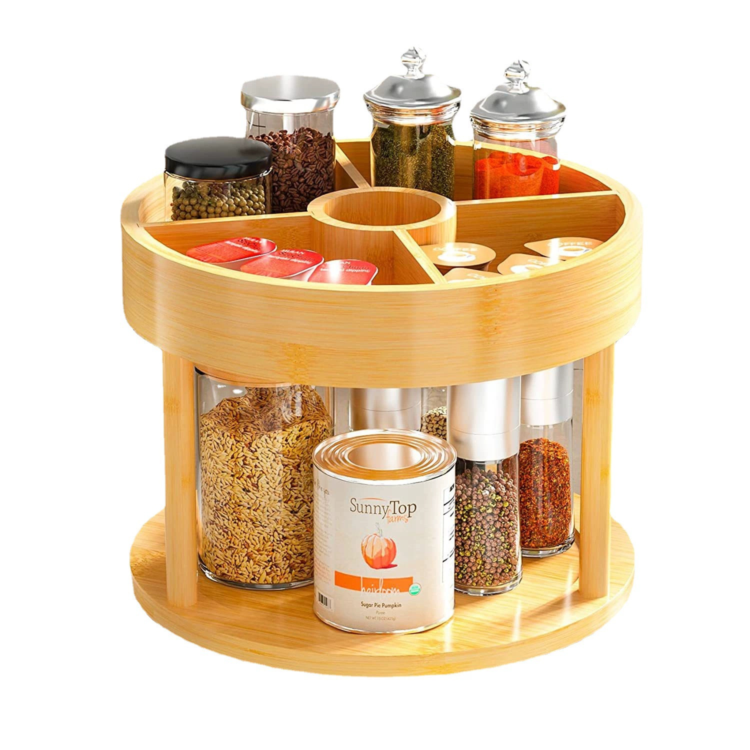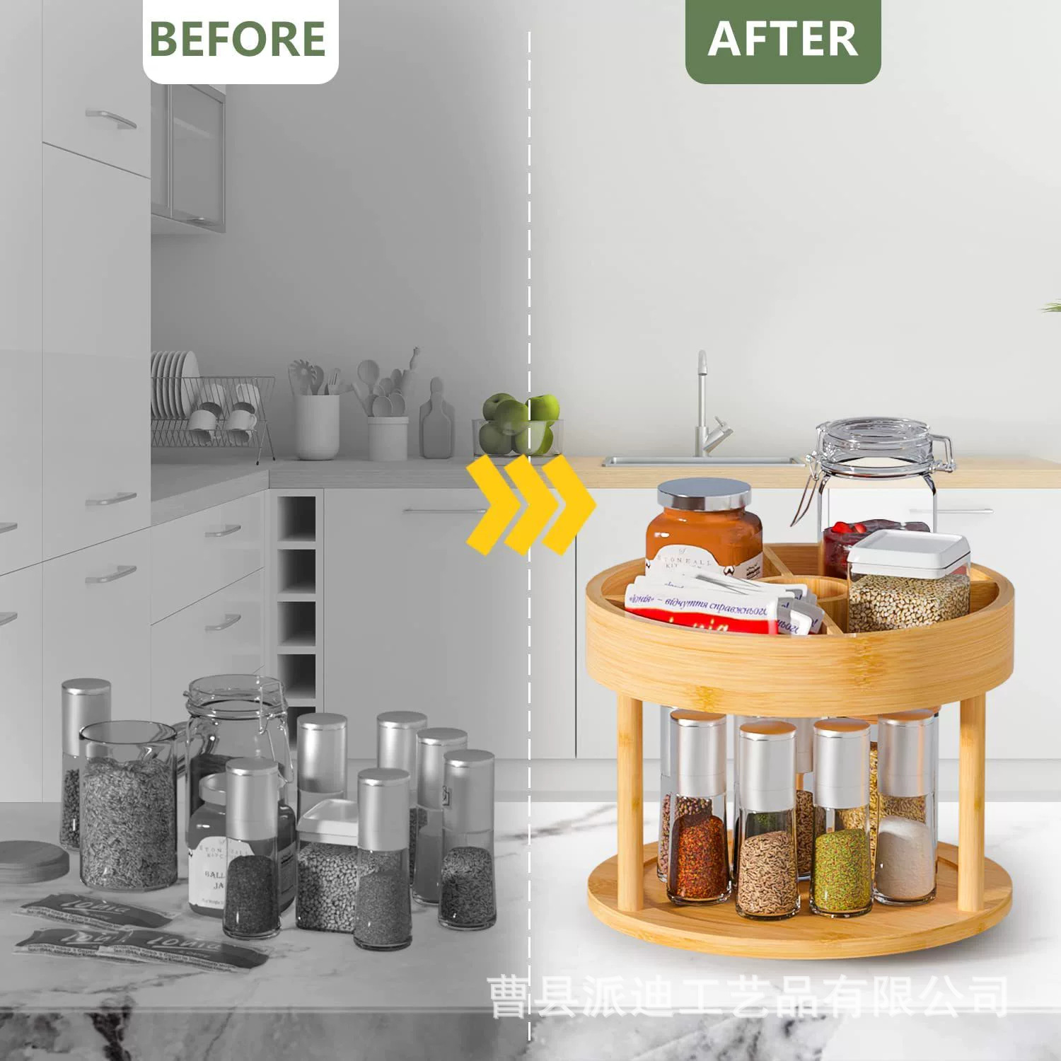 가정용 레스토랑 양념 병 라운드 나무 더블 레이어 턴테이블 나무 저장 트레이 2 층 수잔 향신료 저장 상자