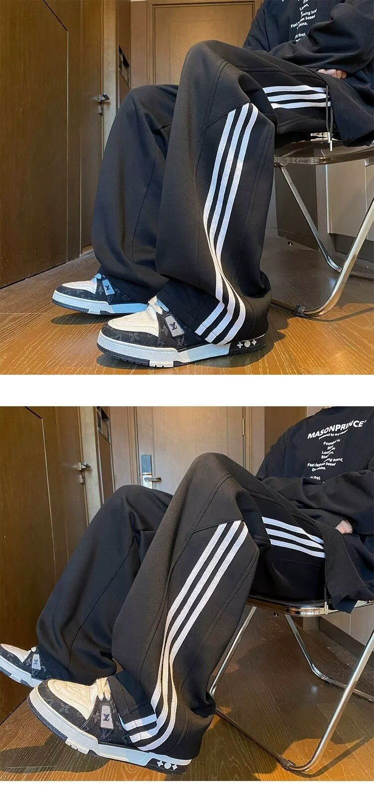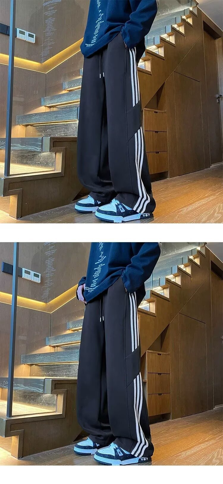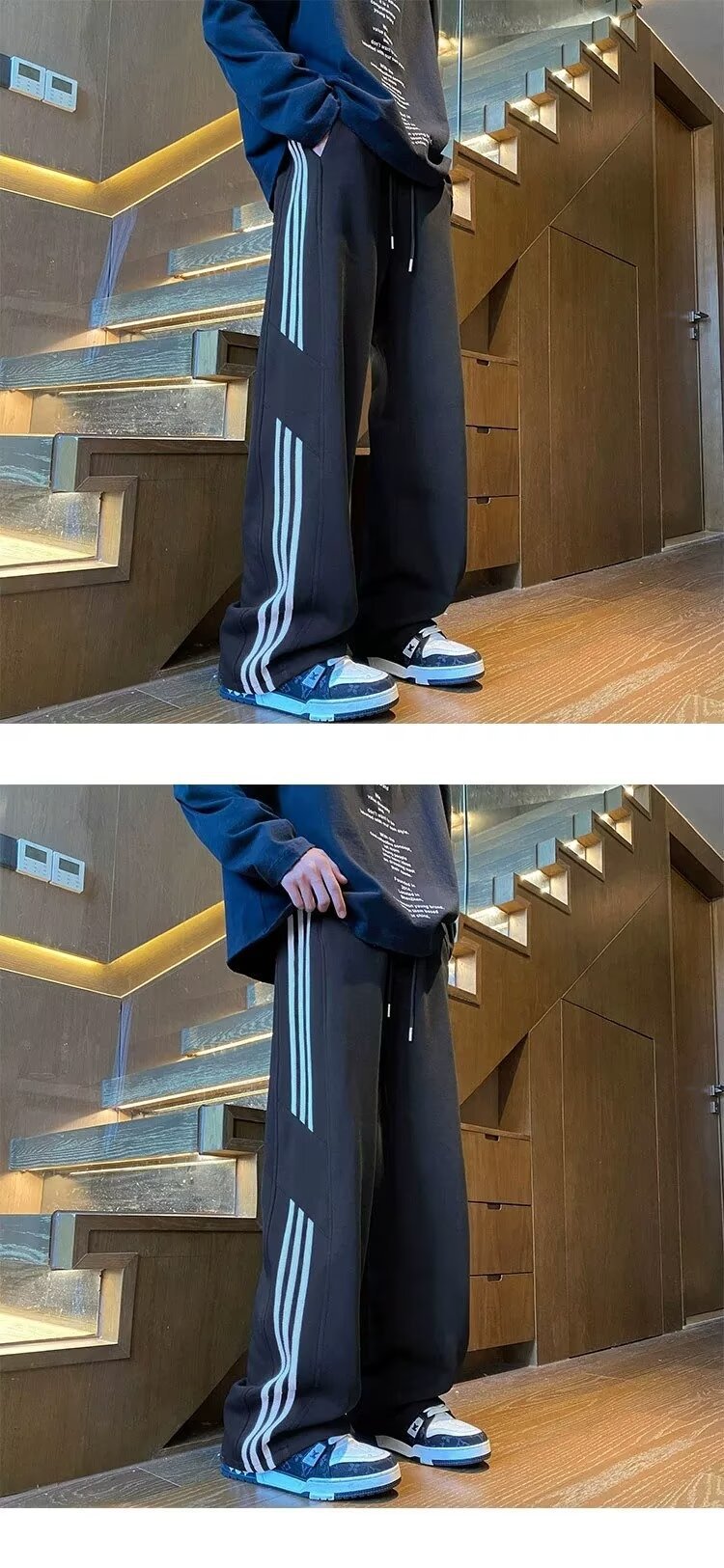 줄무늬 바느질 스포츠 바지 남자의 가을 새로운 디자인 느낌 강아지 잘 생긴 올매치 캐주얼 바지 미국 스트리트 패션 브랜드 바지