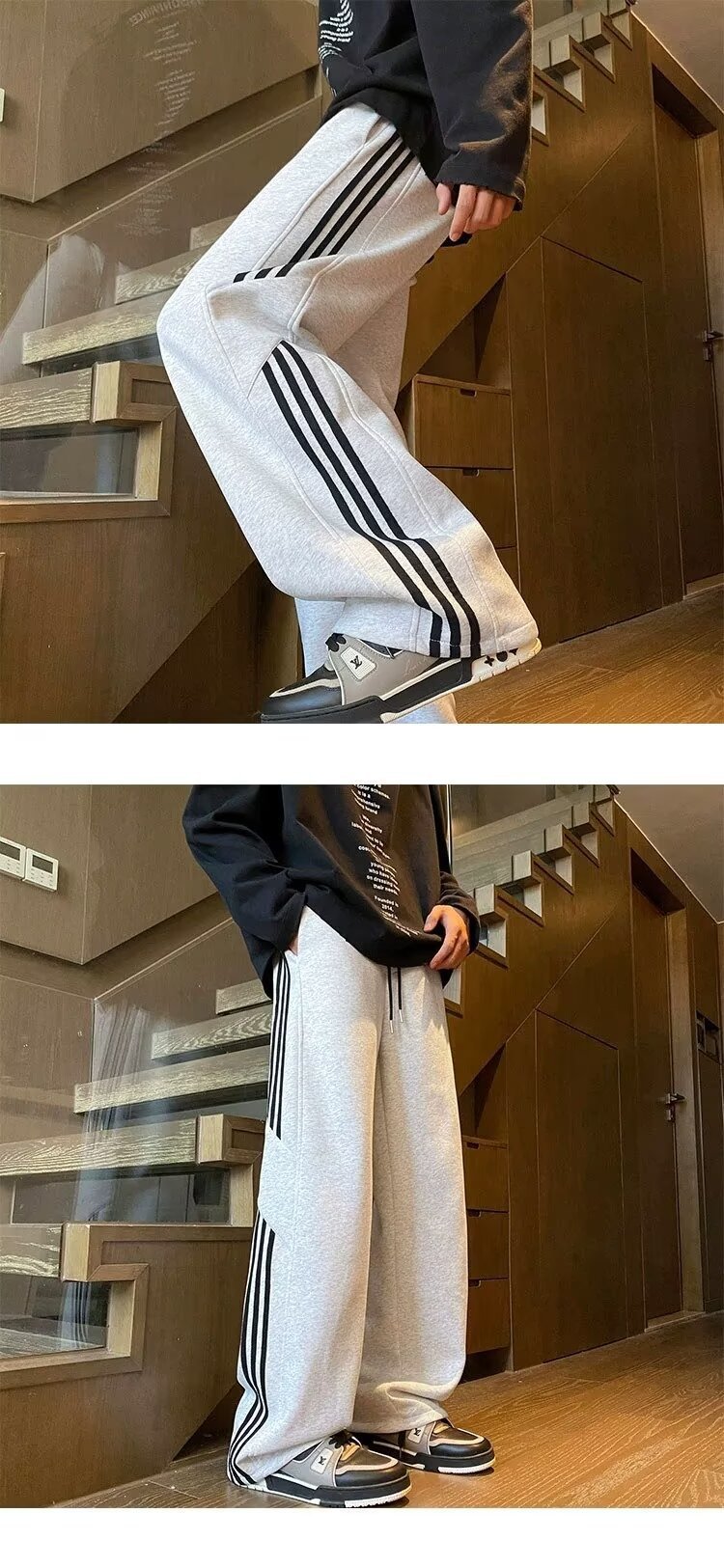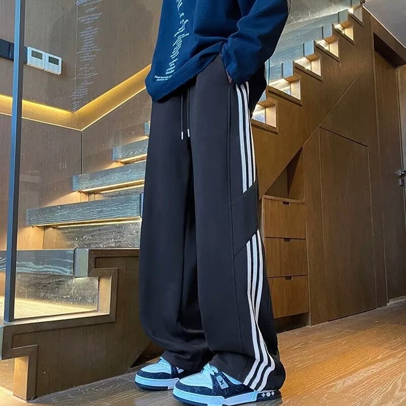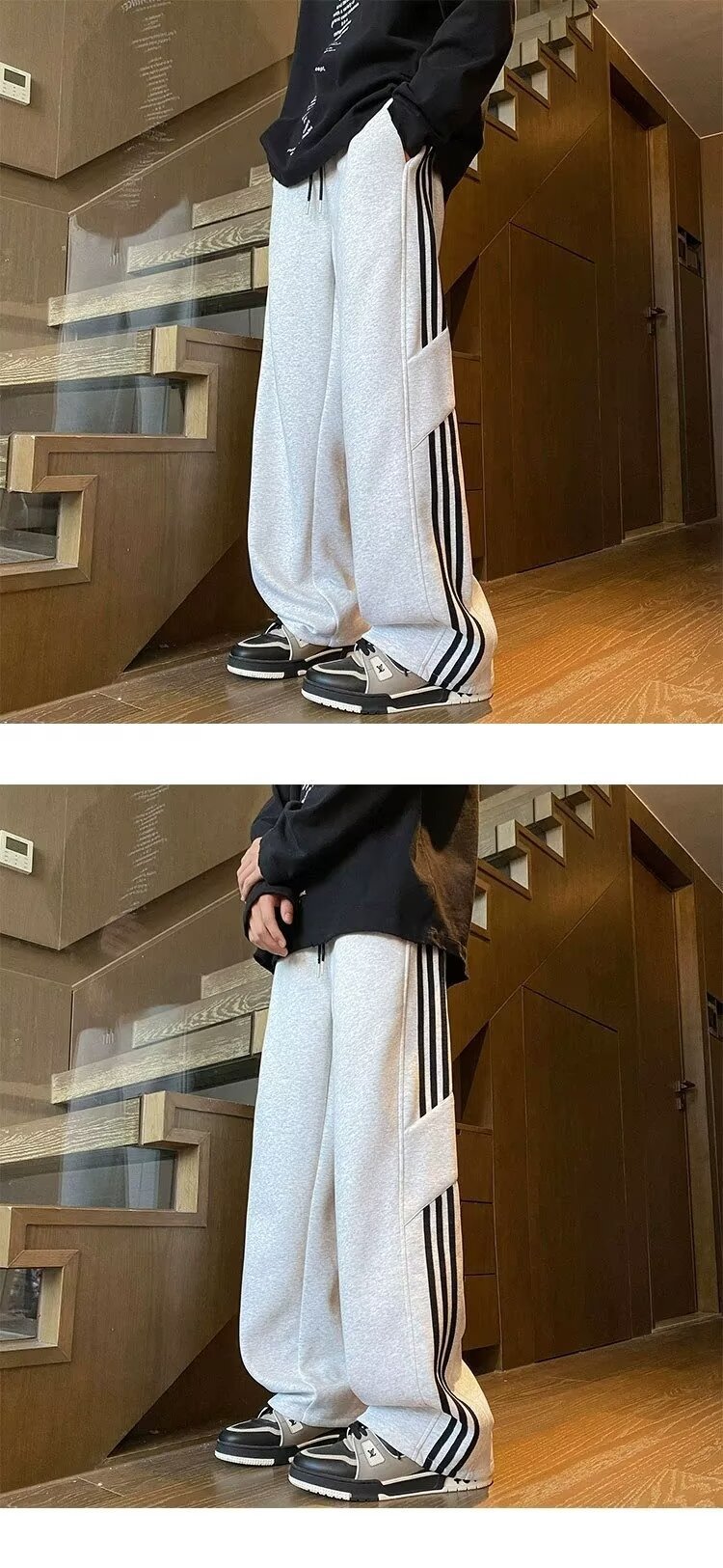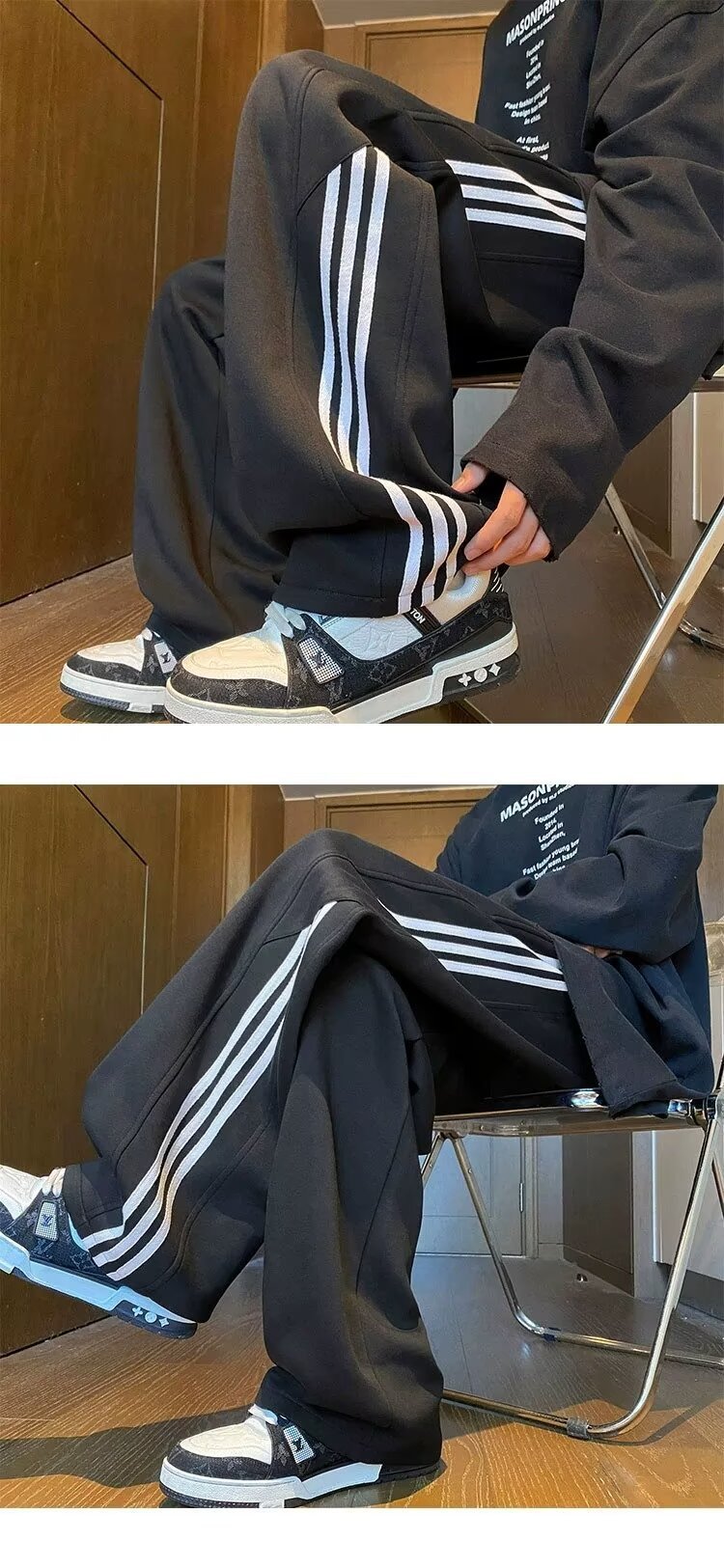 줄무늬 바느질 스포츠 바지 남자의 가을 새로운 디자인 느낌 강아지 잘 생긴 올매치 캐주얼 바지 미국 스트리트 패션 브랜드 바지