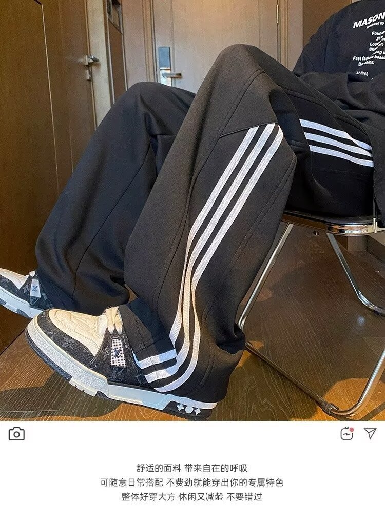 줄무늬 바느질 스포츠 바지 남자의 가을 새로운 디자인 느낌 강아지 잘 생긴 올매치 캐주얼 바지 미국 스트리트 패션 브랜드 바지스토어 가기