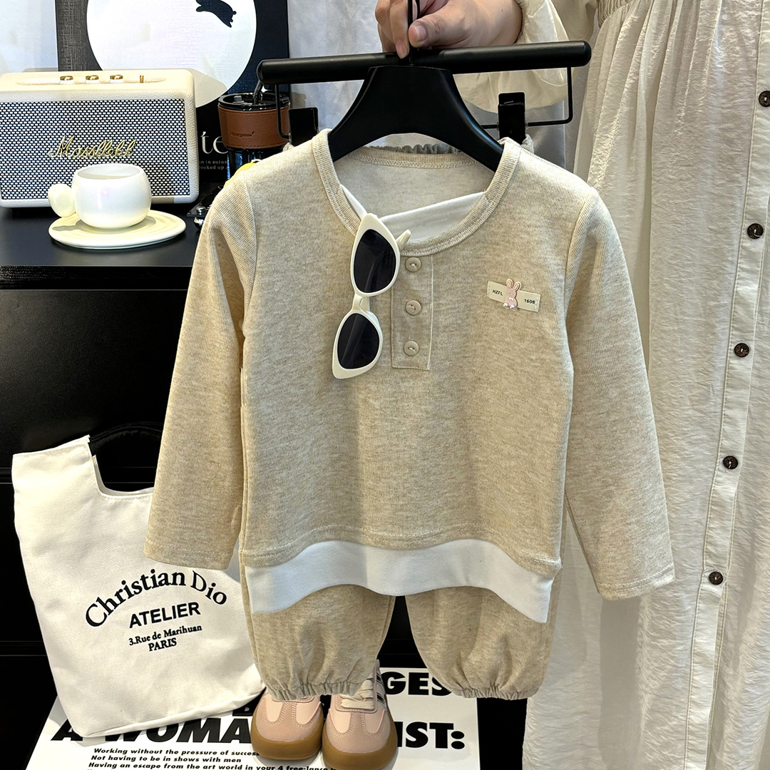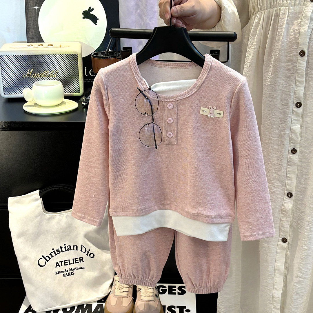 봄 소녀의 새 세트 찹쌀 벨벳 가짜 2 피스 세트 중대형 어린이 투피스 소녀의 가을 세트 스타일