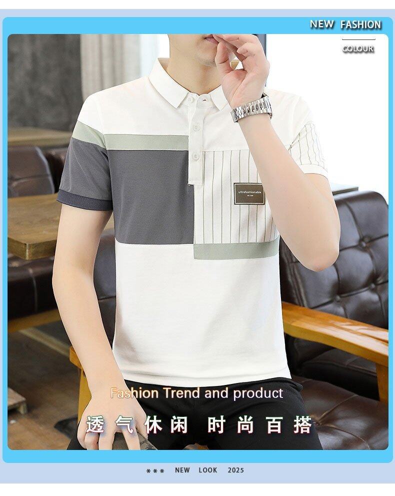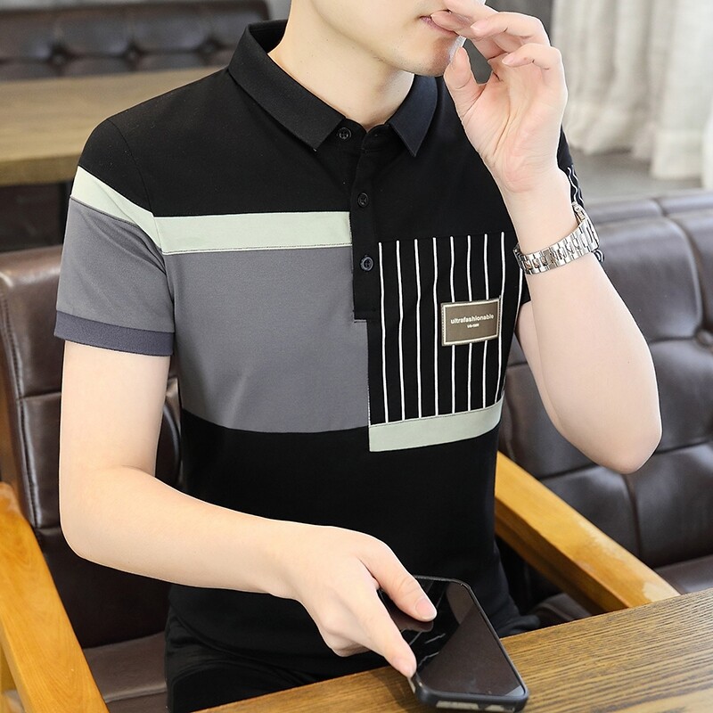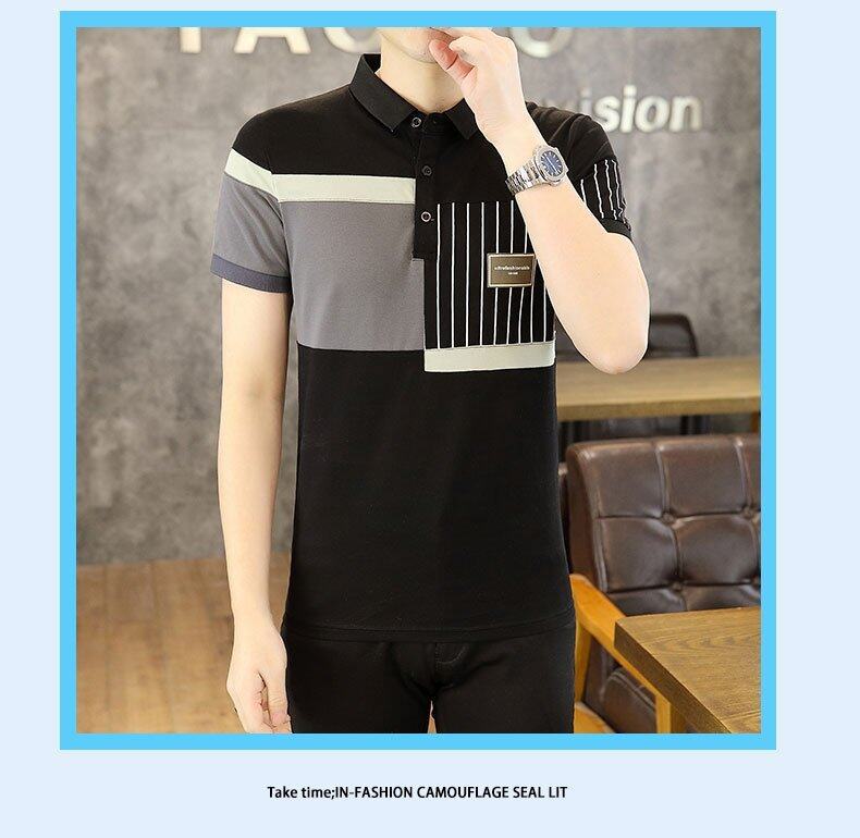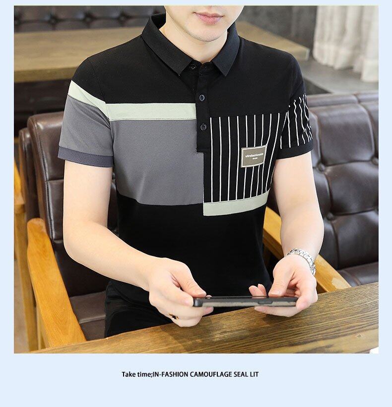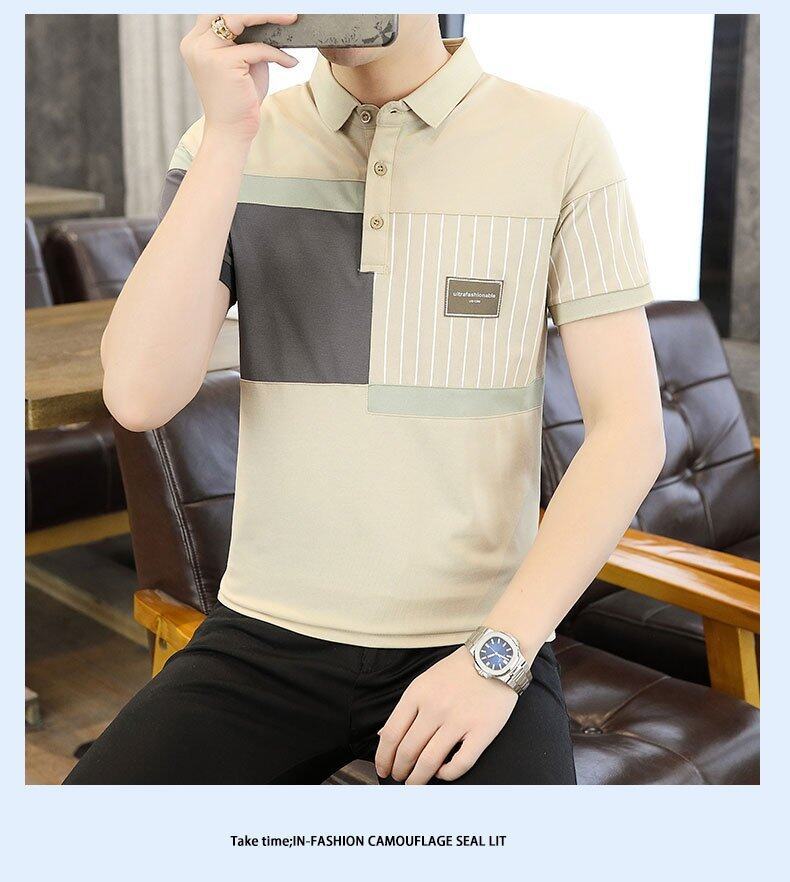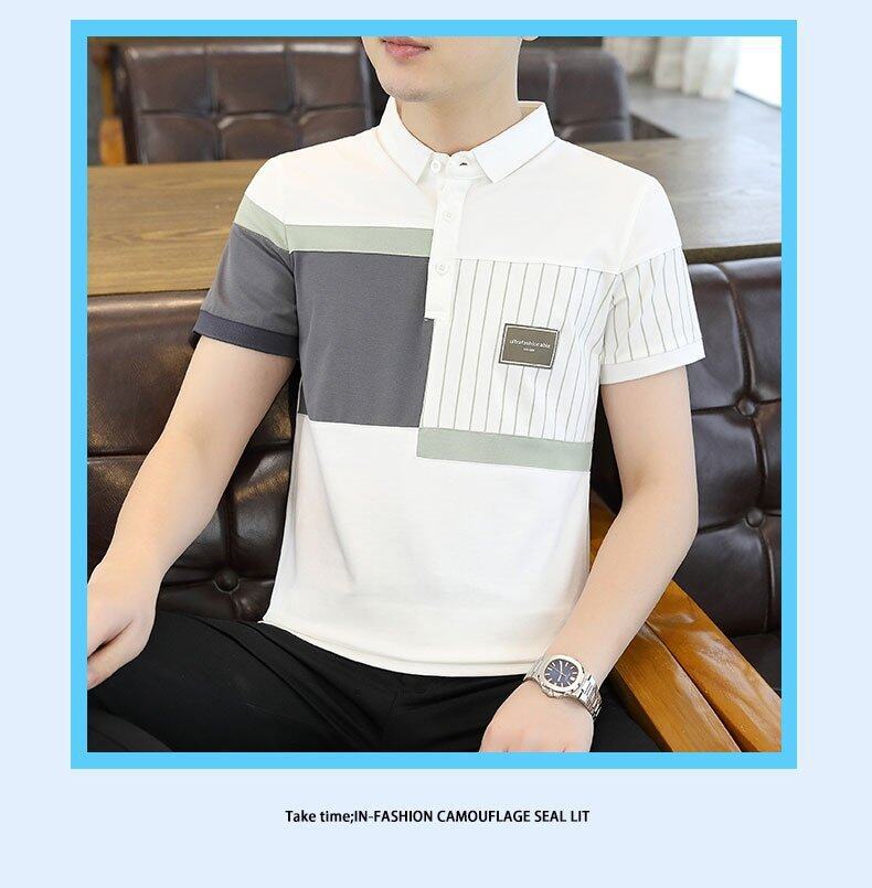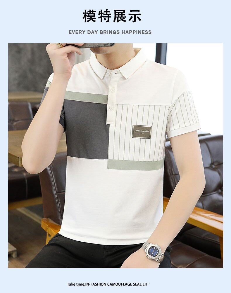 대외 무역 국경 간 AliExpress 신제품 [신규] 봄 캐주얼 패션 티셔츠 남성용 반팔 바닥 셔츠