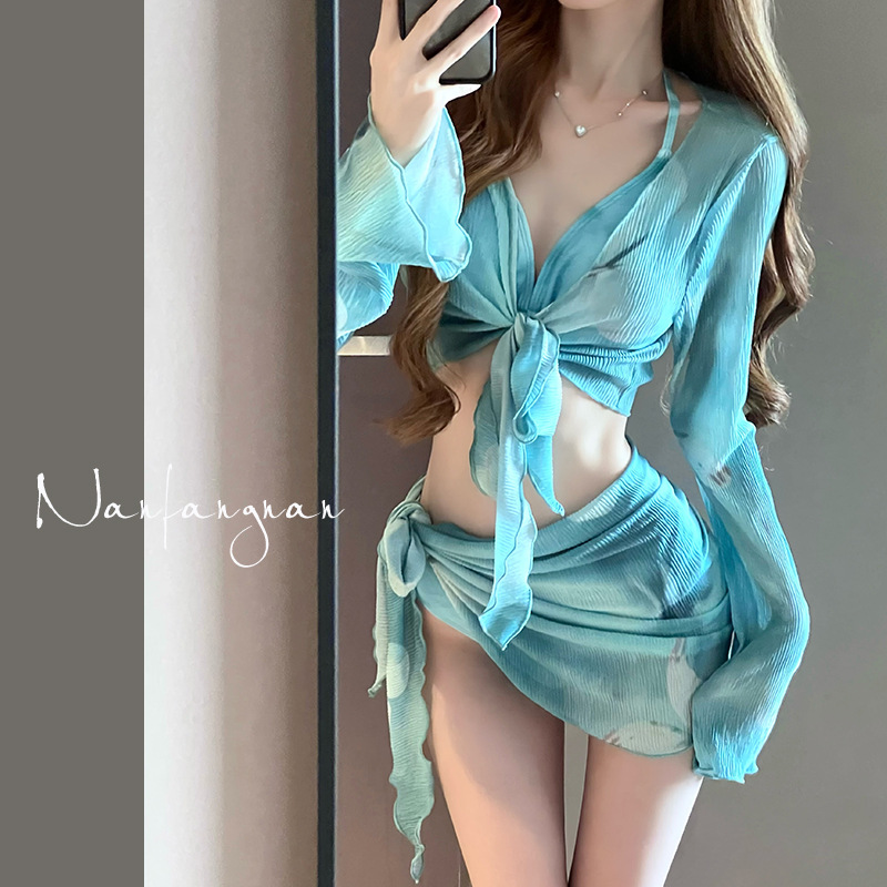2025 새로운 여름 BIKIN 뜨거운 소녀 스타일 4 피스 비키니 순수한 욕망 뜨거운 봄 휴가 섹시한 해변 수영복스토어 가기