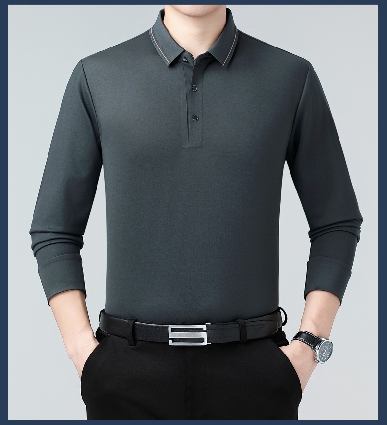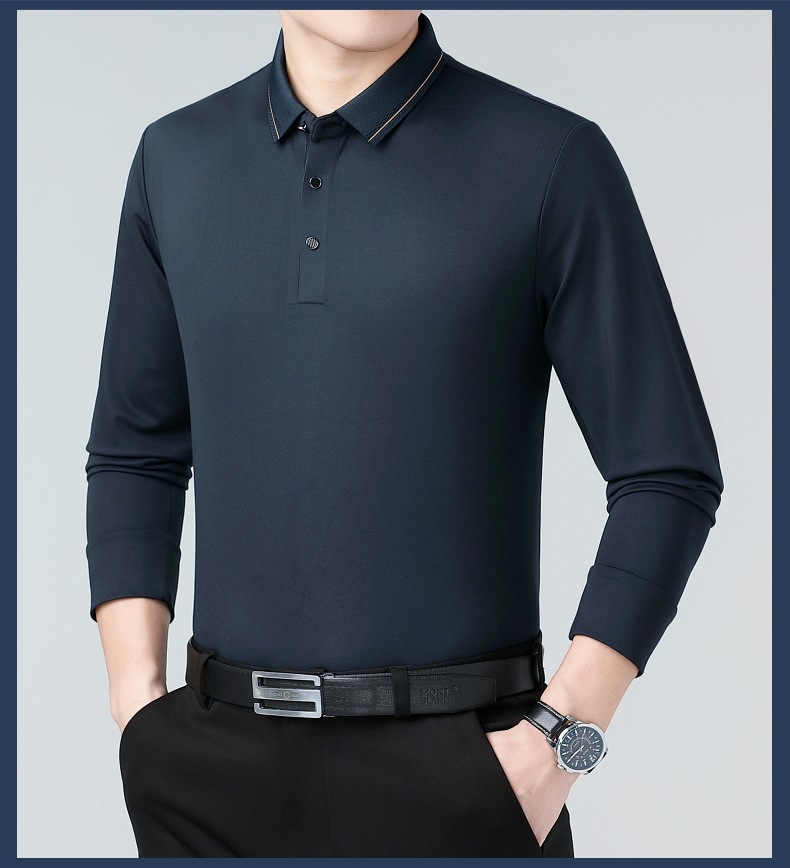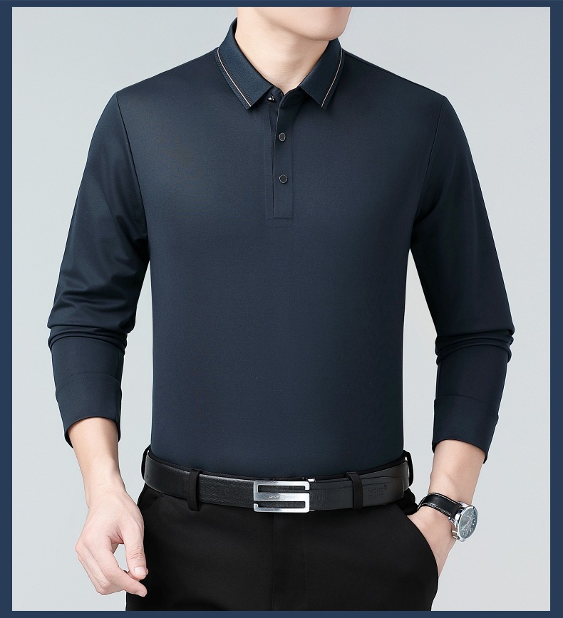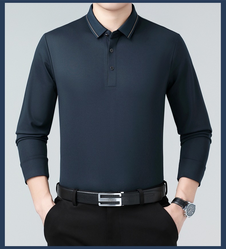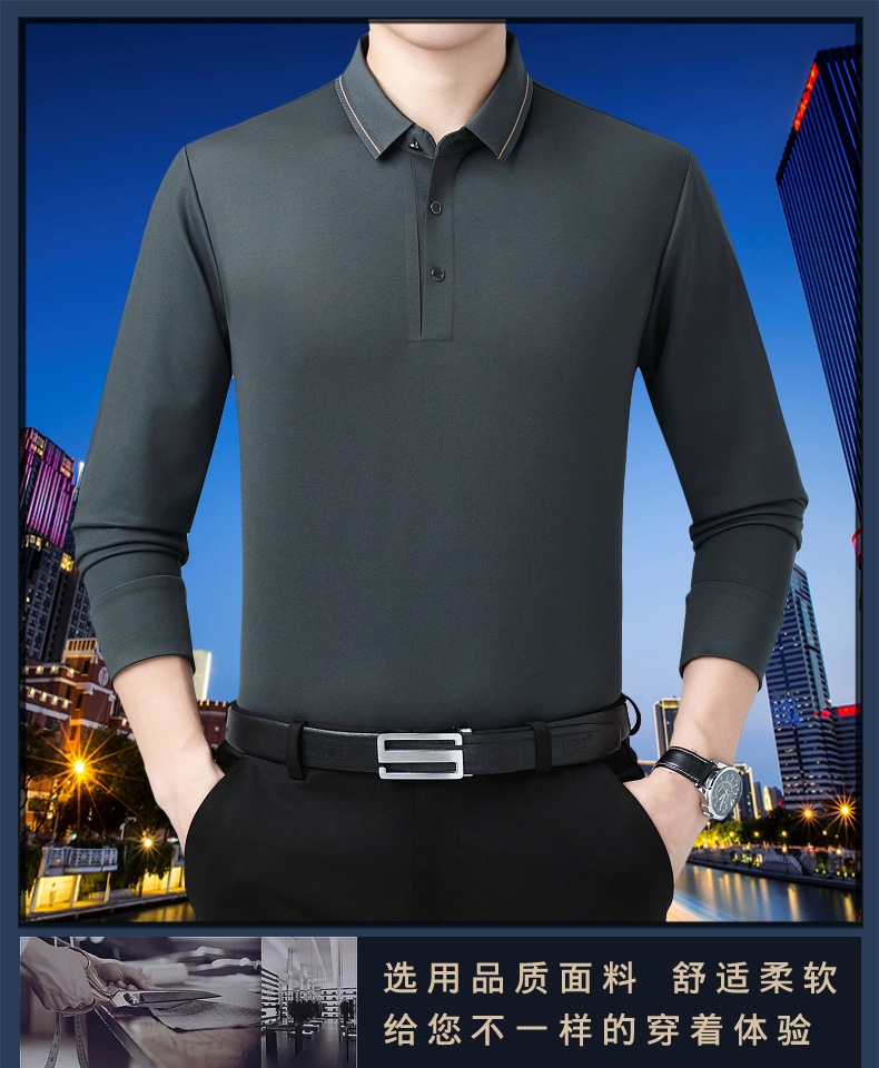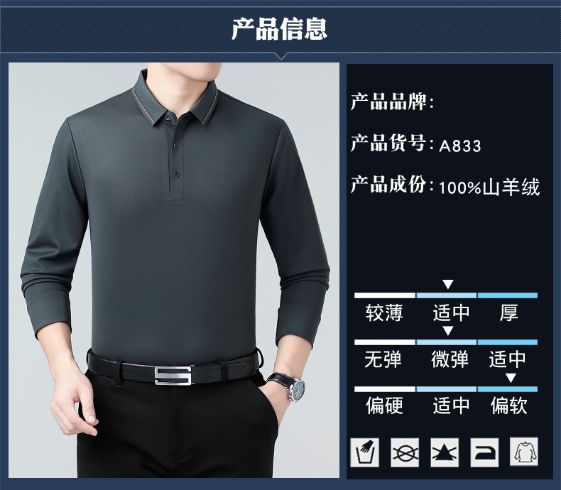 가벼운 럭셔리 브랜드 봄과 가을 중년 및 노인 아빠 세트 캐시미어 남성 티셔츠 옷깃 비즈니스 캐주얼 긴 소매 폴로 셔츠스토어 가기