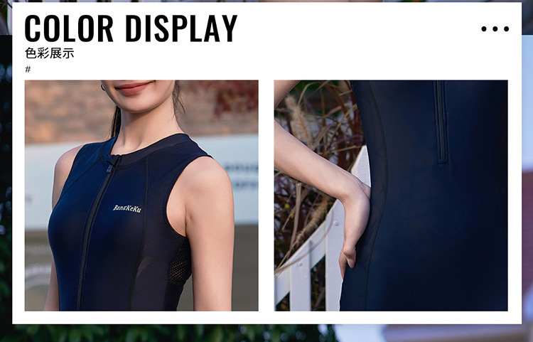수영복 하이 엔드 유럽 및 미국 국경 대외 무역 서핑 수트 퓨어 블랙 지퍼 민소매 스포츠 원피스 수영복 레이싱