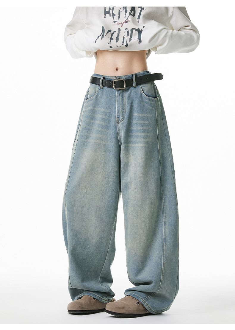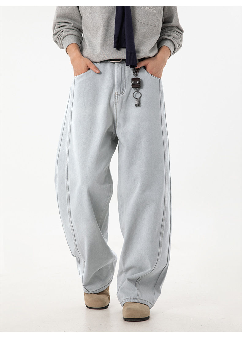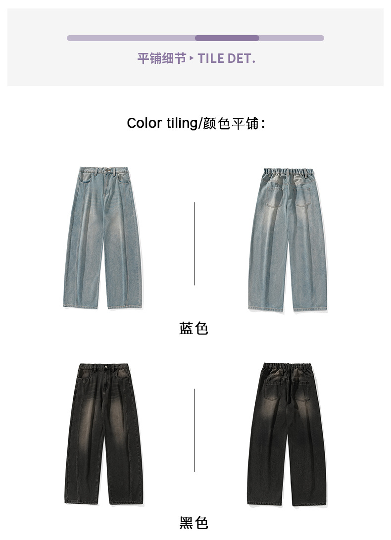 루즈핏 워싱 데님 팬츠 남성용 봄 신상 사이드 스플릿 디자인 래디쉬 팬츠 아메리칸 레트로 롱 팬츠스토어 가기