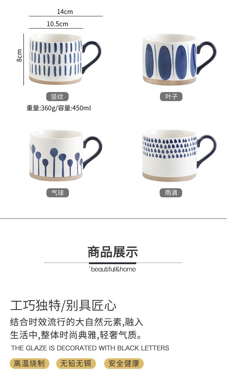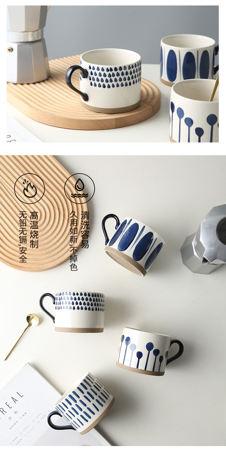 석기 바구니 아침 식사 컵 대용량 유약 색상 손으로 그린 세라믹 머그컵 오트밀 컵 청키 노르딕 인