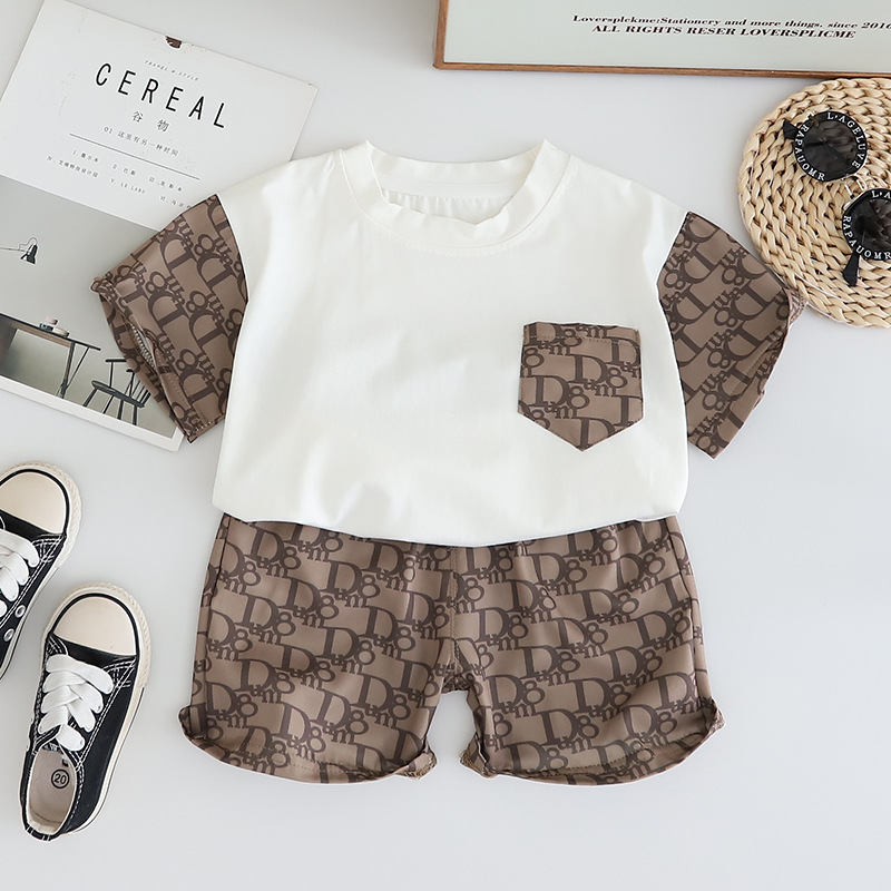 어린이 의류 소년의 여름 세트 새로운 스타일 서양식 인쇄 편지 어린이 반팔 세트 티셔츠 어린이를위한 여름 옷스토어 가기