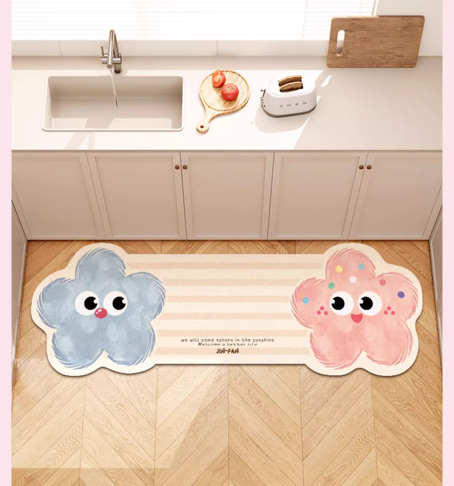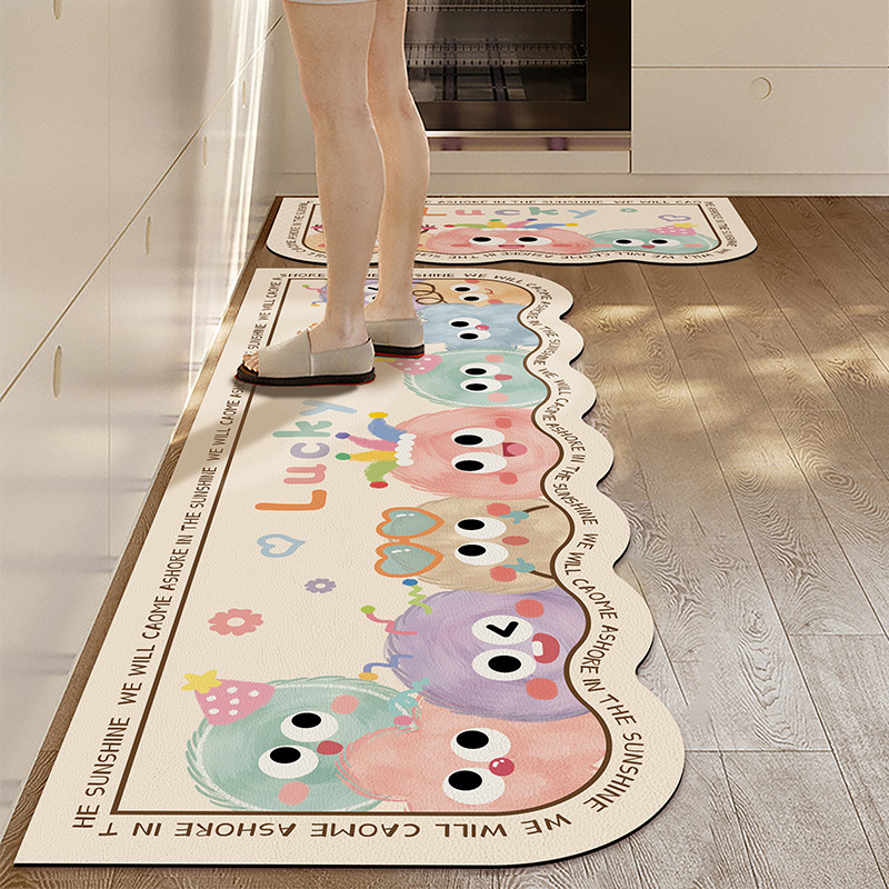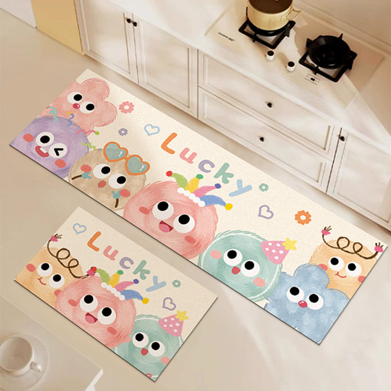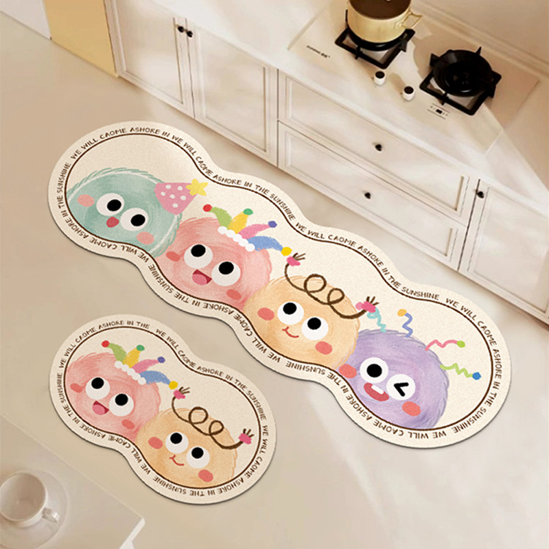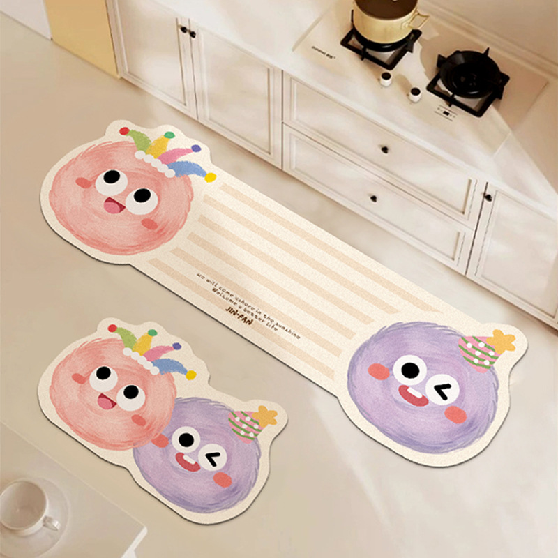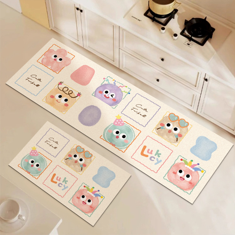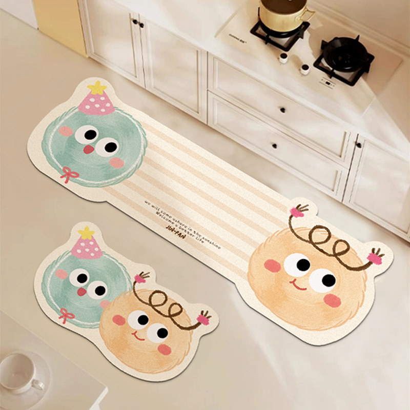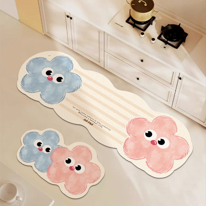 주방 특수 바닥 매트 다이아몬드 진흙 흡수성 미끄럼 방지 발 매트 가정용 만화 카펫 화장실 문 매트