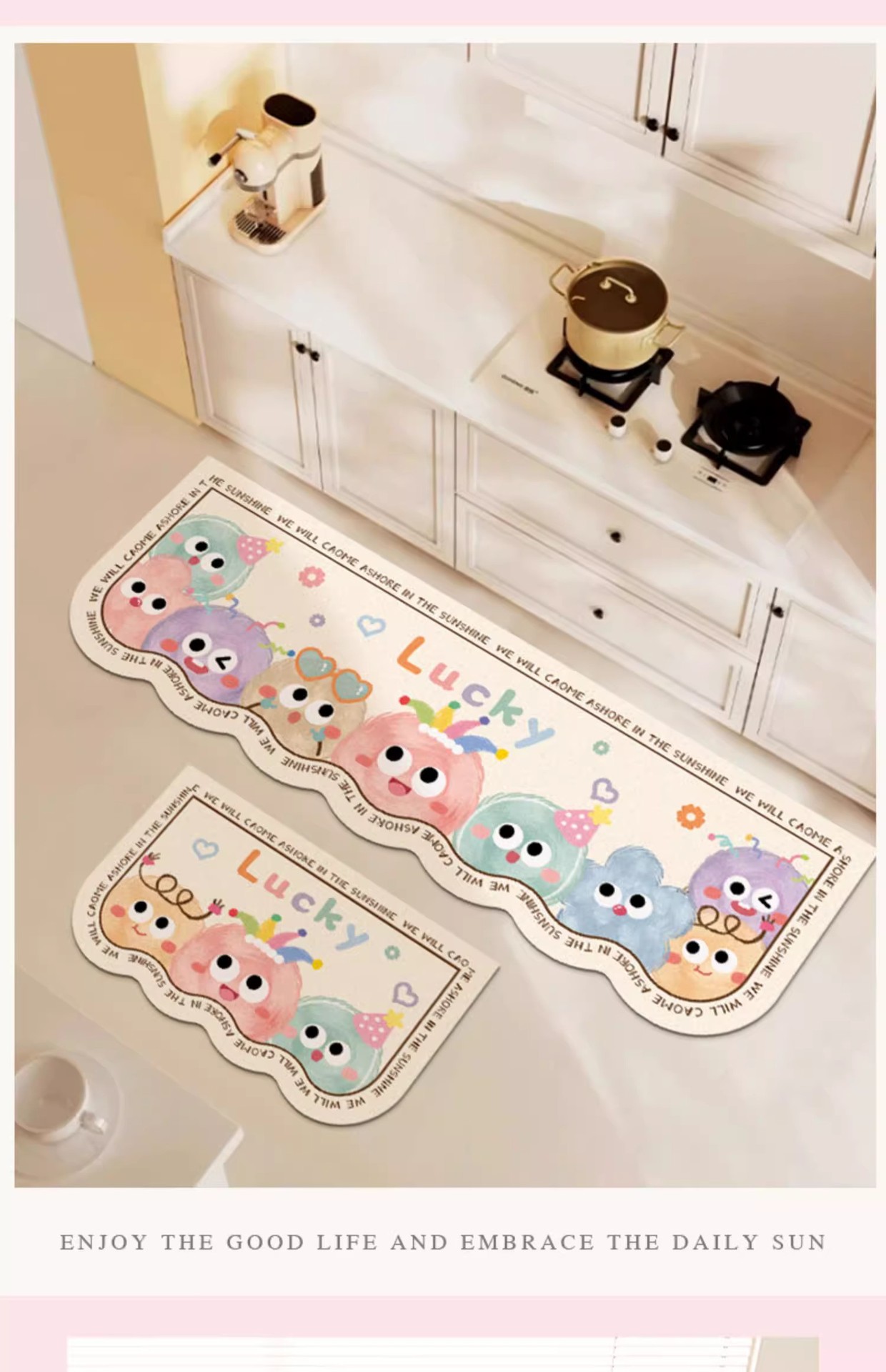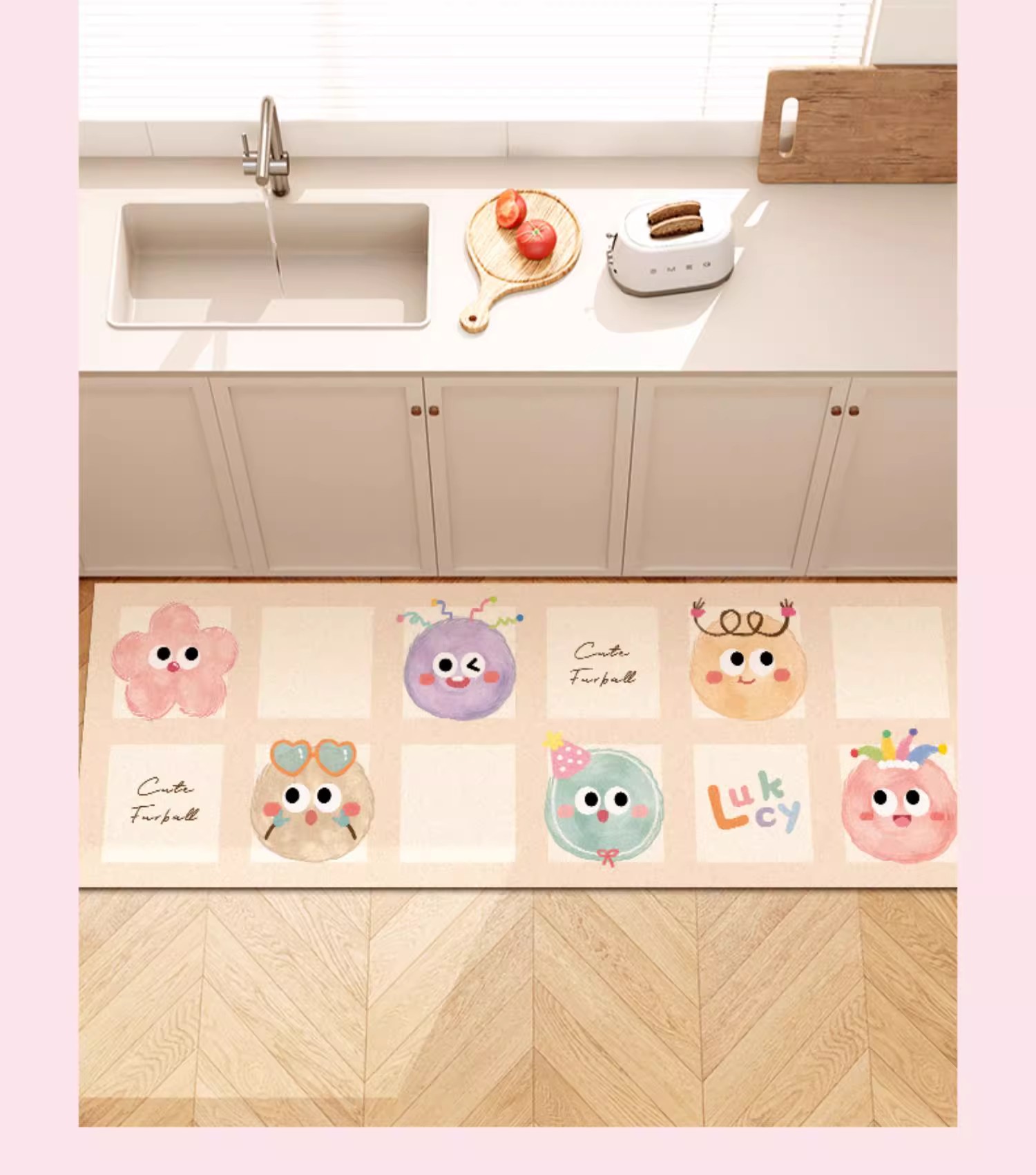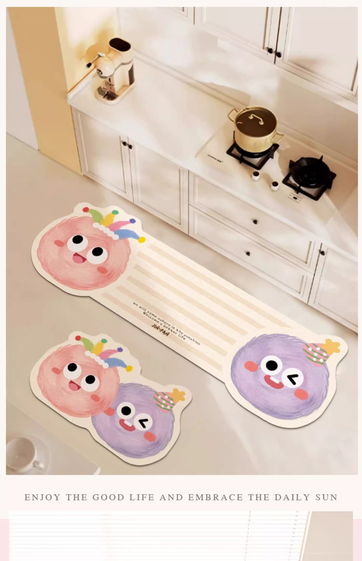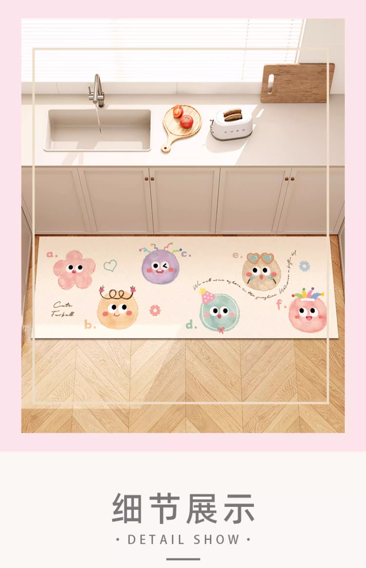 주방 특수 바닥 매트 다이아몬드 진흙 흡수성 미끄럼 방지 발 매트 가정용 만화 카펫 화장실 문 매트스토어 가기