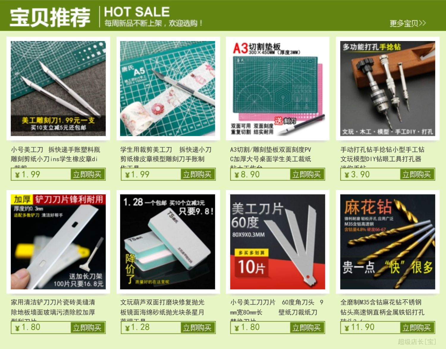 • A3 짙은 녹색 백킹 플레이트 + 조각칼 1개